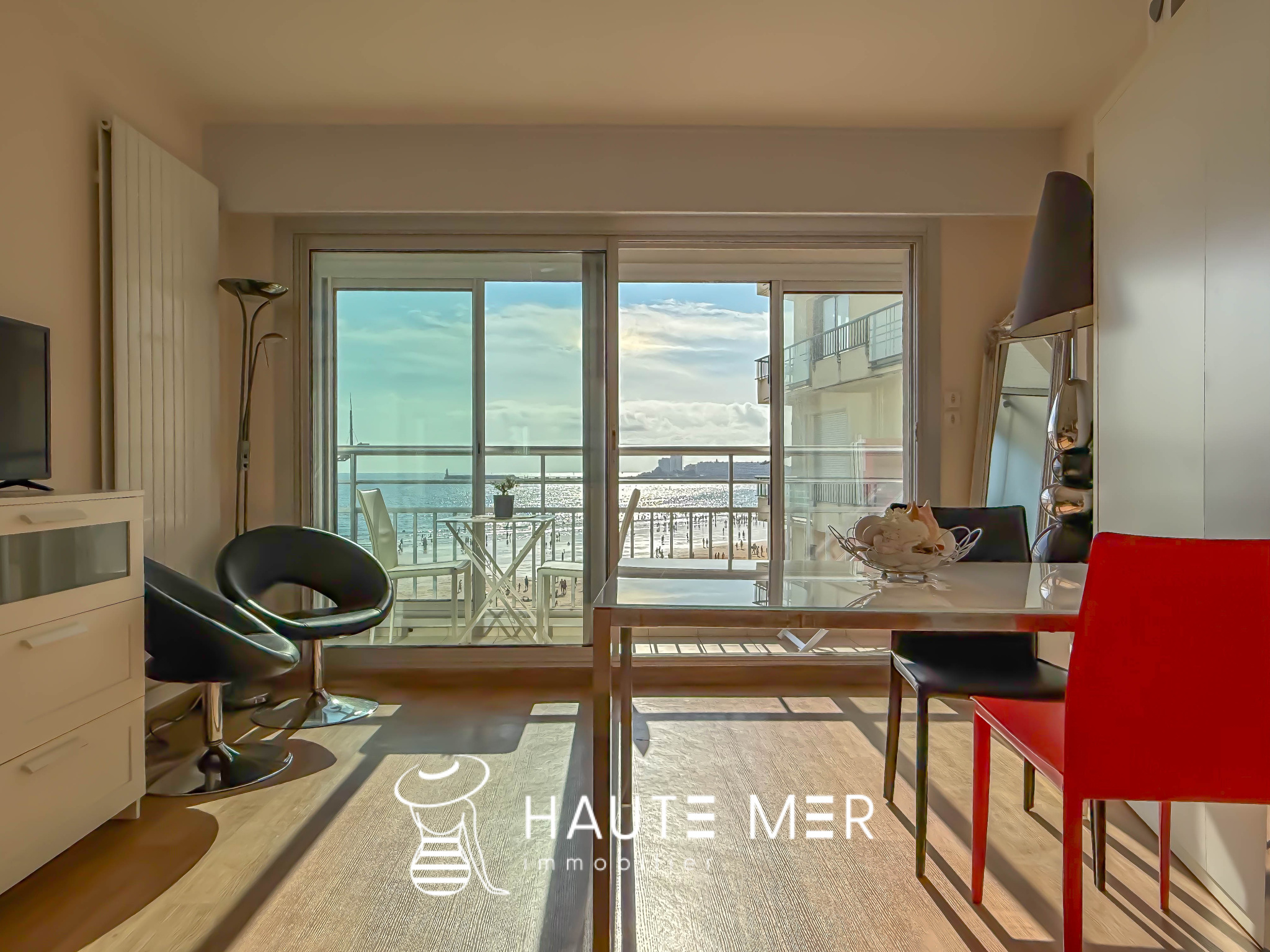C'est au coeur du remblai des Sables d'Olonne et à quelques pas des commerces d'Arago et du centre-ville que ce studio prend place. Élevé au 3ème étage d'une agréable résidence, la large pièce principale se prolonge sur une loggia dominant la rade. La cuisine, aménagée et équipée, profite également de la vue. Une salle d'eau et un wc indépendant complète cet appartement à la vue exceptionelle. L'appartement dispose d'une place de parking à proximité, en complément du prix. retrouvez toutes nos annonces sur www.hautemerimmobilier.com