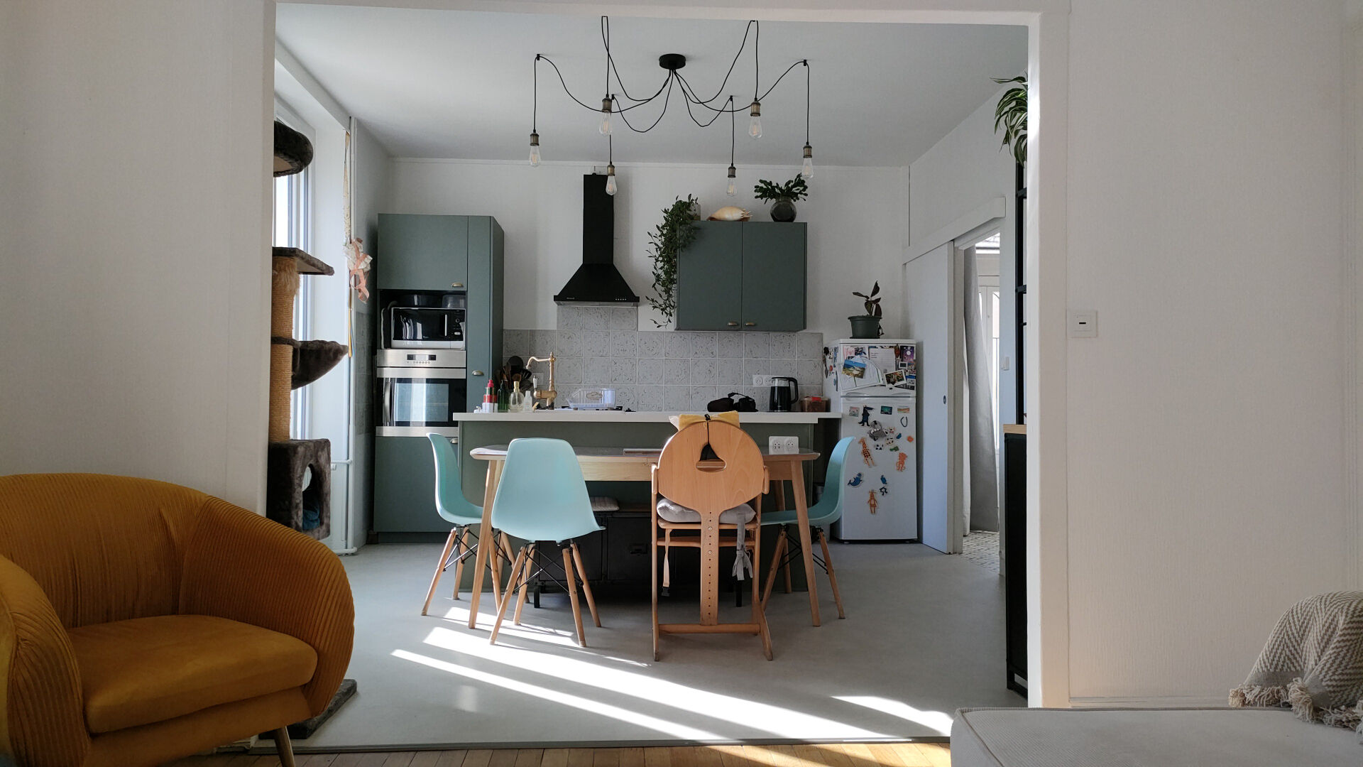Eric (EP) vous propose cette maison au charme des années 50, parfaitement rénovée, comprenant entrée, cuisine aménagée équipée ouverte sur salon avec poêle, cellier, bureau ou chambre, toilettes.