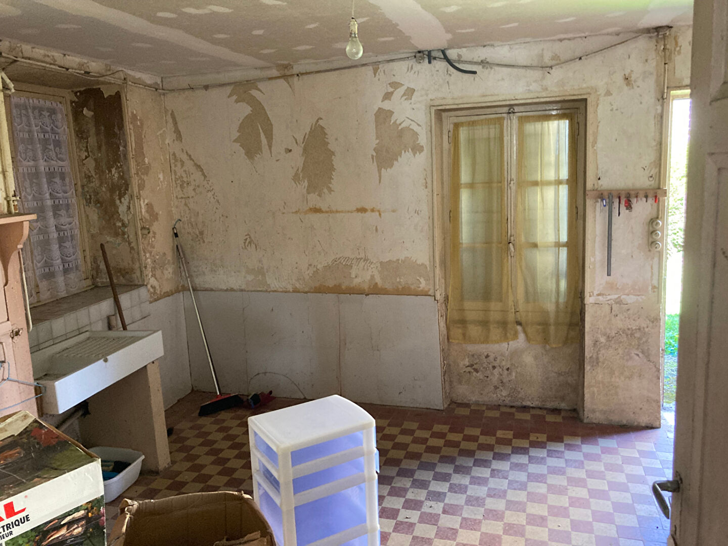 Au coeur d'un bourg avec commerces et écoles, maison d'habitation à rénover comprenant: