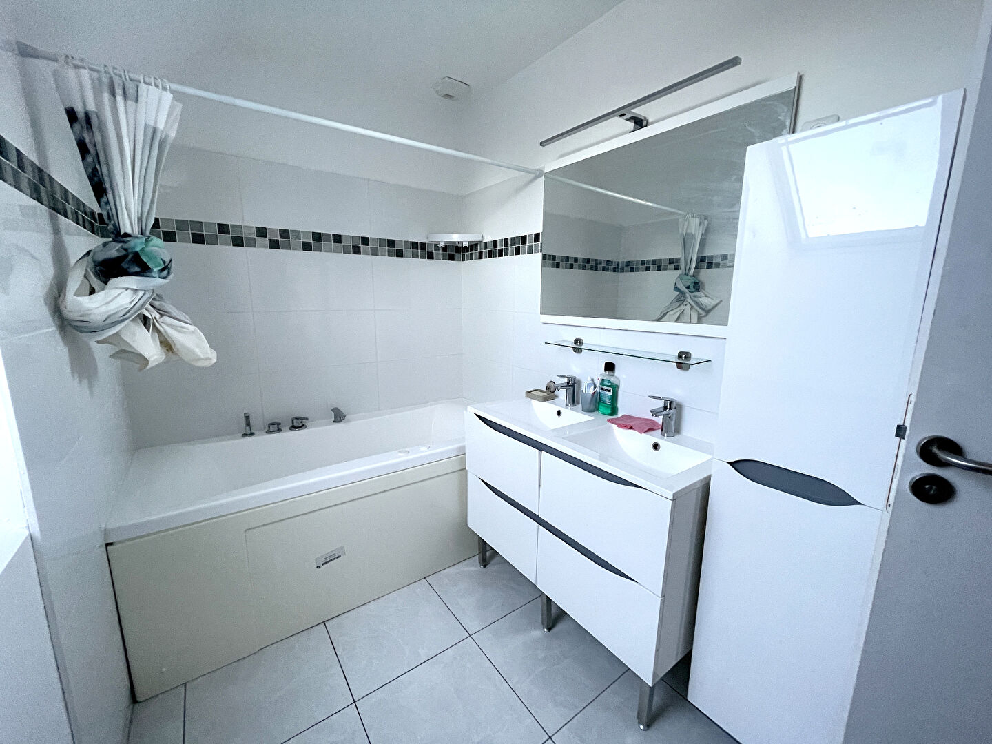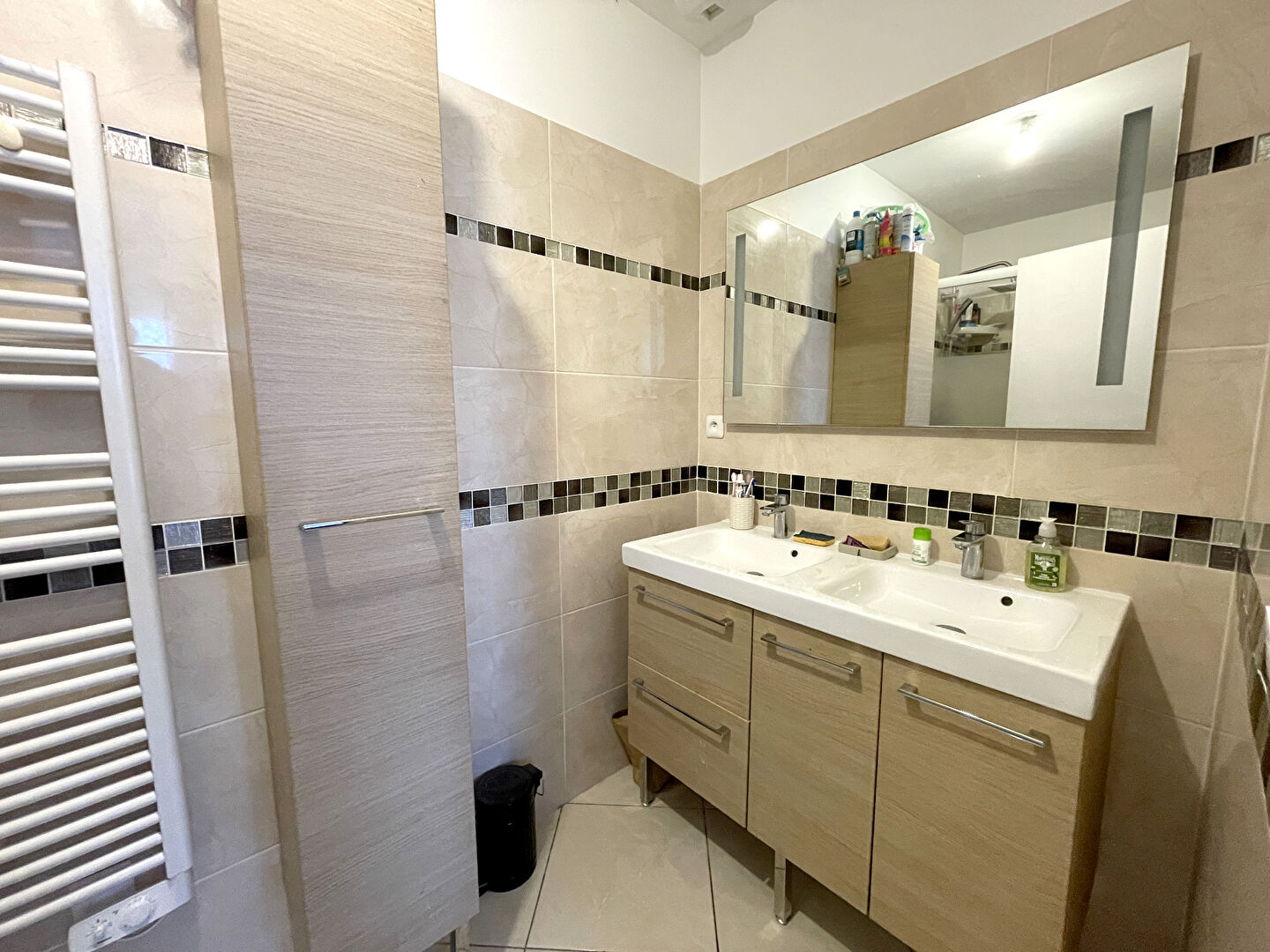Le rez-de-chaussée se compose d'un séjour-salle à manger lumineux avec double exposition et accès direct à la terrasse, d'une cuisine ouverte aménagée et équipée, d'une buanderie, un WC, ainsi que d'une chambre avec sa salle d'eau.