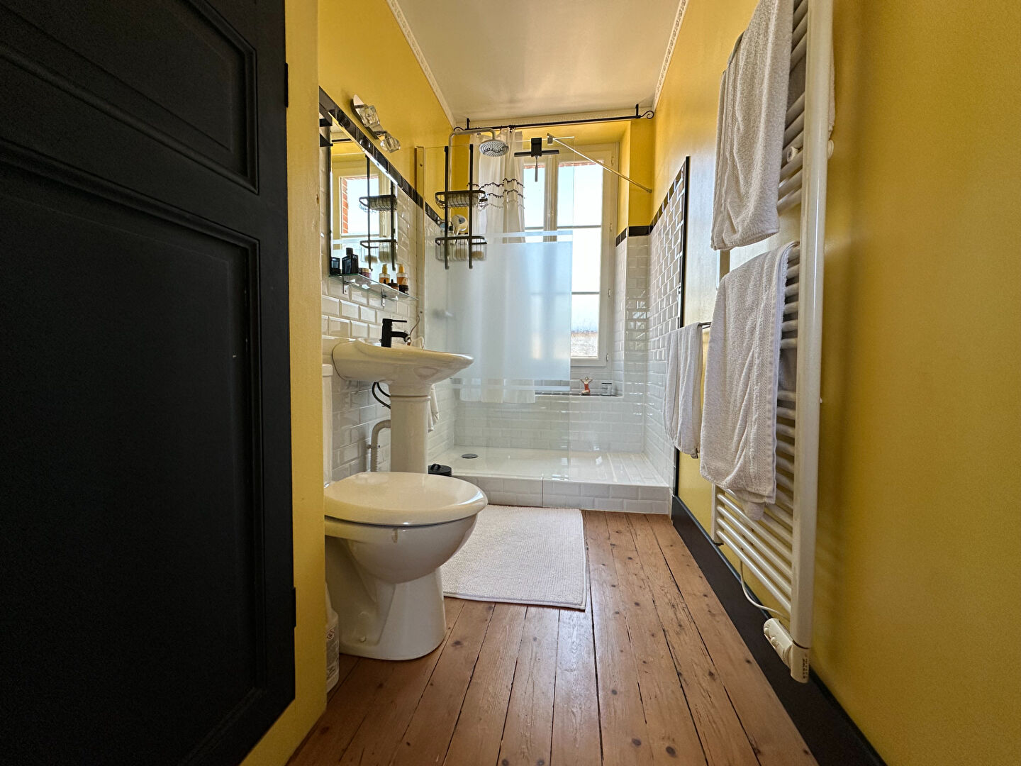 Au 1er étage vous trouverez deux grandes chambres avec parquets d'origine et cheminée, dont une avec dressing aménagé, une salle d'eau et WC . Et pour finir une suite parentale située au deuxième étage .