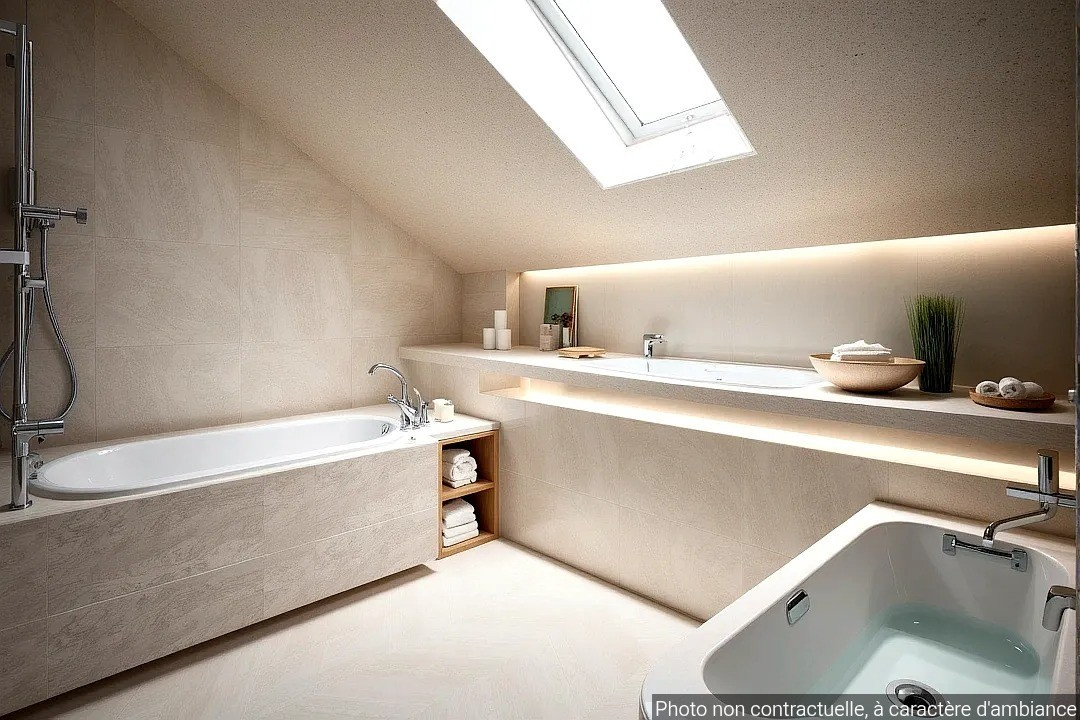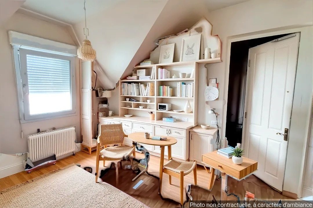 A l'étage trois chambres sous pente, offrant un espace intime et chaleureux, une salle de bains .