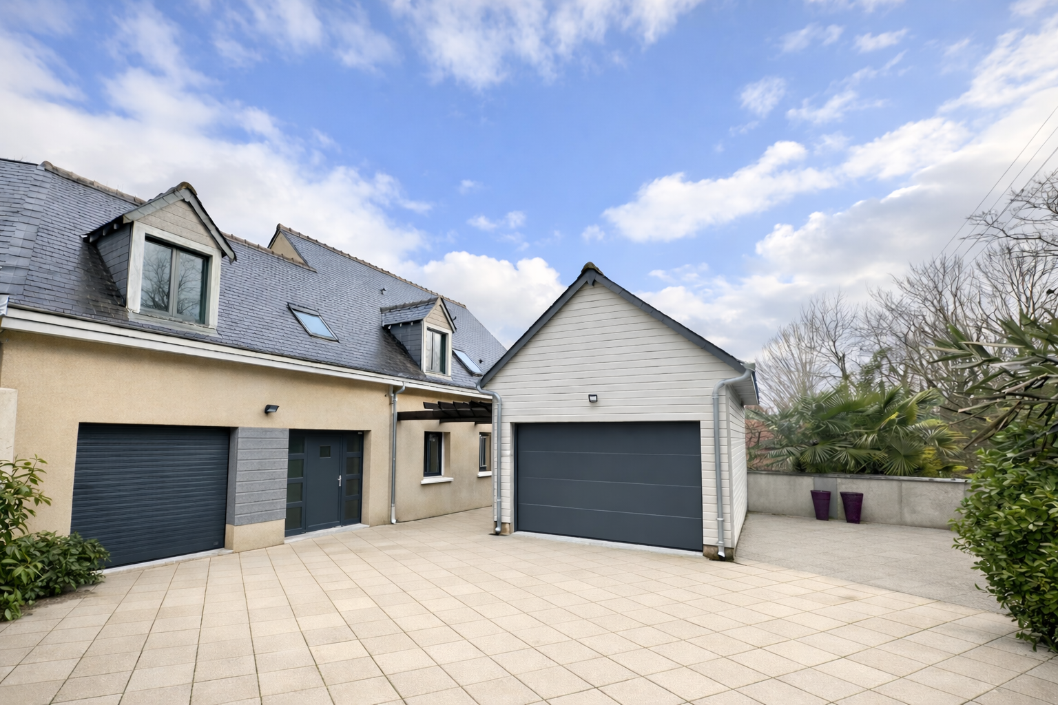210 m2 habitables + double garage (27,5 m2) + atelier (19 m2) + garage indépendant.