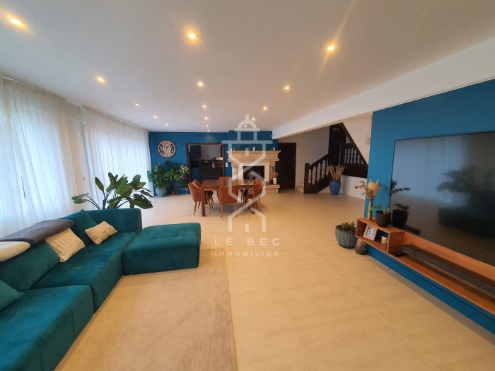 Découvrez cette grande maison non mitoyenne, construite en 1973 et entièrement rénovée avec des matériaux de qualité. Offrant une belle entrée spacieuse, cette propriété dispose d'un vaste espace de vie d'environ 80m², comprenant une cuisine ouverte aménagée et équipée, ainsi qu'une arrière-cuisine pratique.