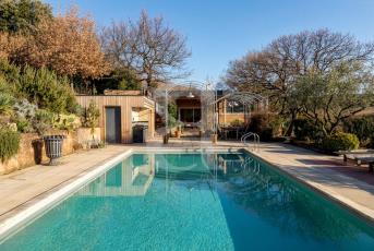 Découvrez cette belle maison atypique et pleine de charme située dans un magnifique village provençal, implantée sur une parcelle arborée de plus de 4 500 m² exposée Sud, avec piscine, sauna, et studio indépendant. Elle s'intègre parfaitement dans son environnement, entourée d'une végétation verdoyante.