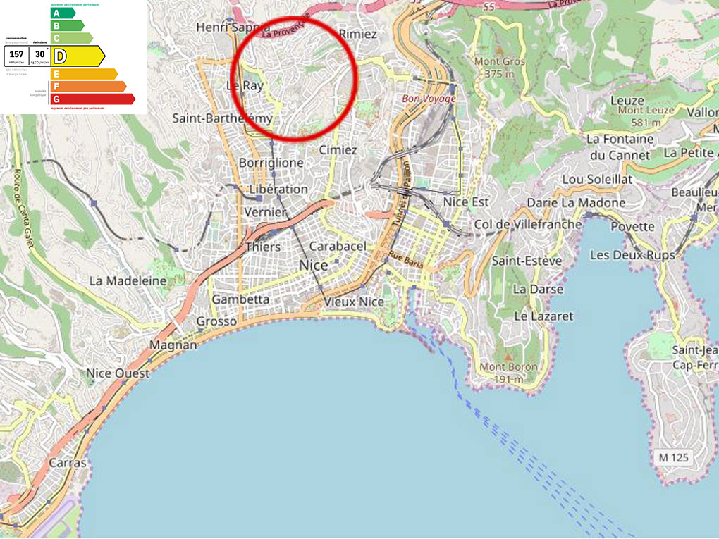 Très bien desservi par les transports en commun : arrêt de bus à côté de la résidence ou arrêt de tramway ligne 1 Comte de Falicon.