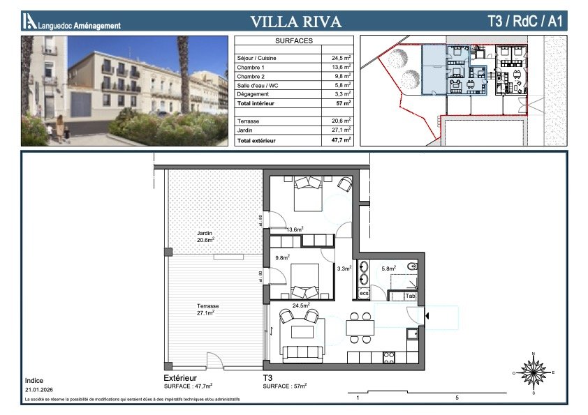 Dans une résidence neuve idéalement située au bord d'un quai, découvrez ce bel appartement de type 3, d'une surface de 57,30 m², situé en rez-de-chaussée surélevé.