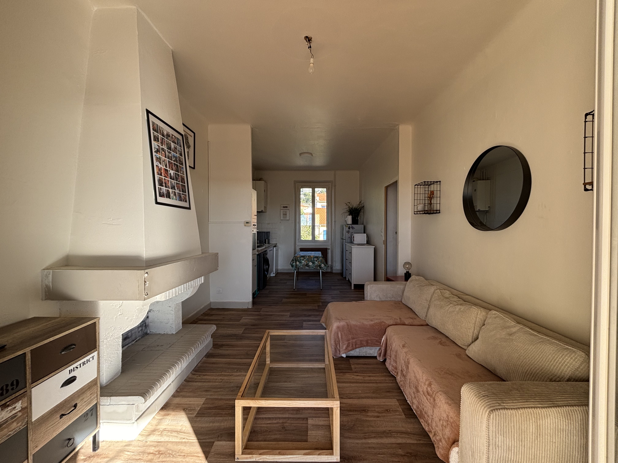 À l'étage, avec accès par un escalier sur le coté, avec une hauteur sous plafond de 3,05 m,un appartement T3 de 57 m2 environ comprenant : séjour avec cuisine ouverte, couloir, 2 chambres, ainsi que d'une salle d'eau avec WC, le tout donnant sur une terrasse de 24 m2 environ.