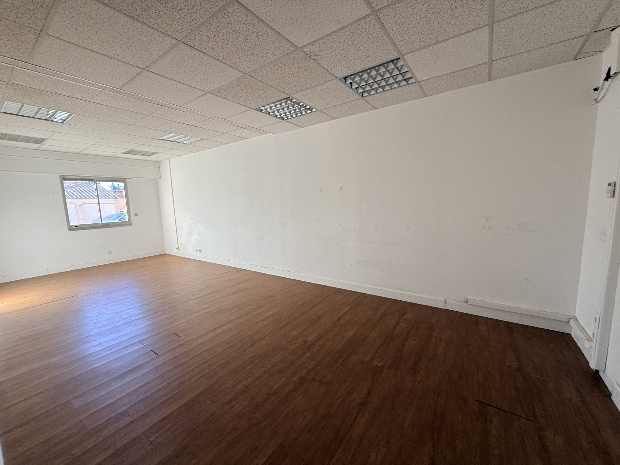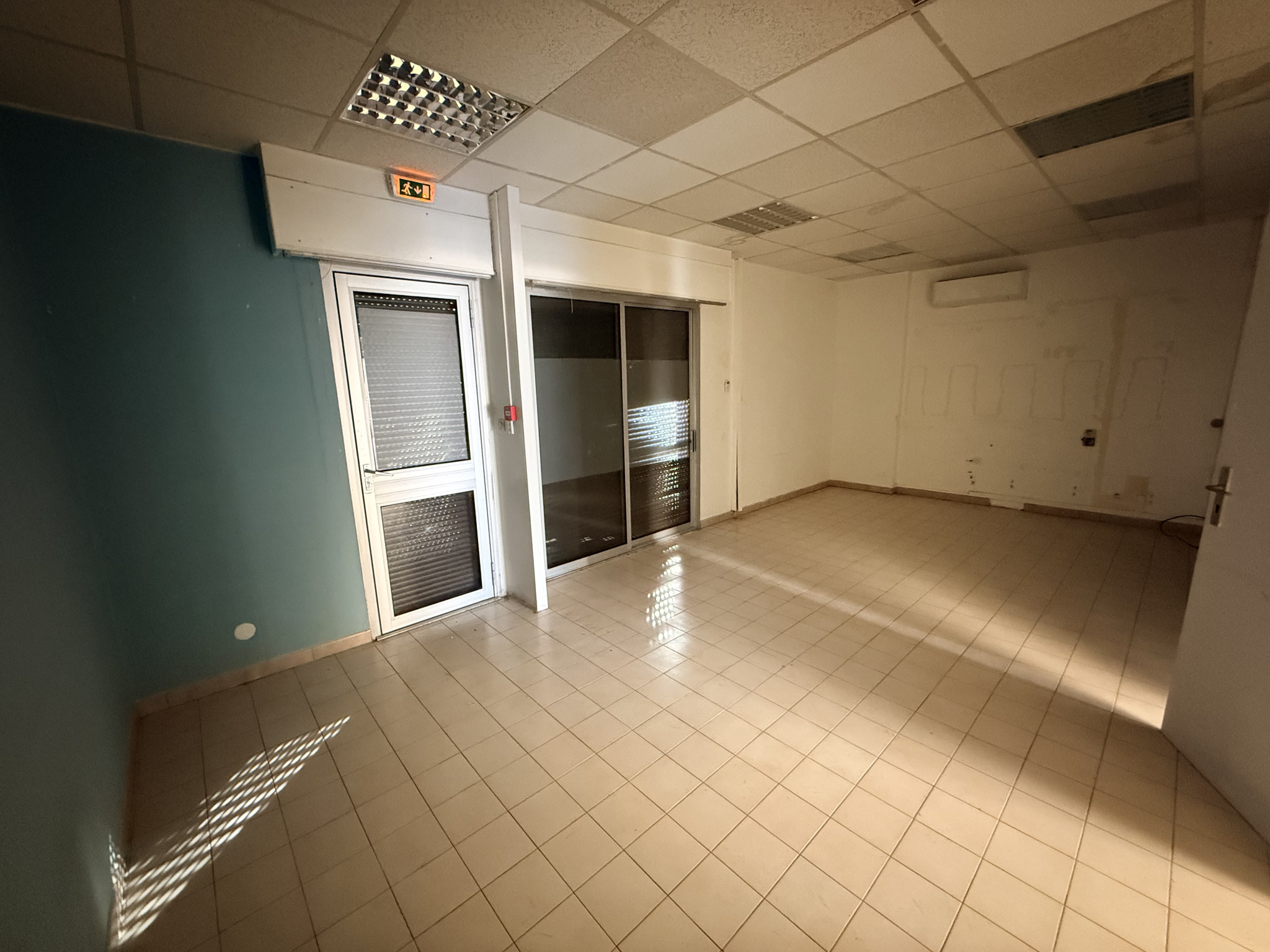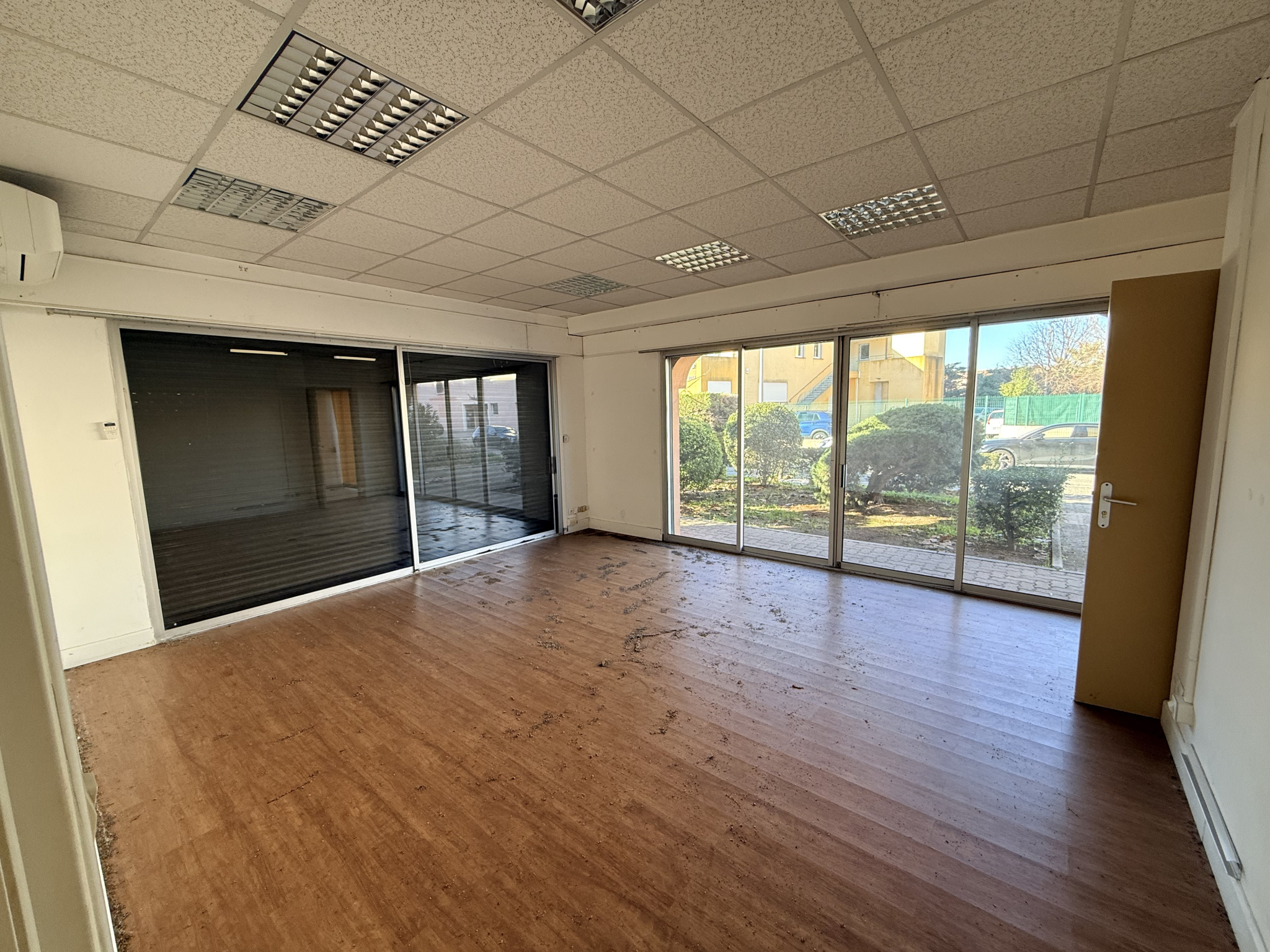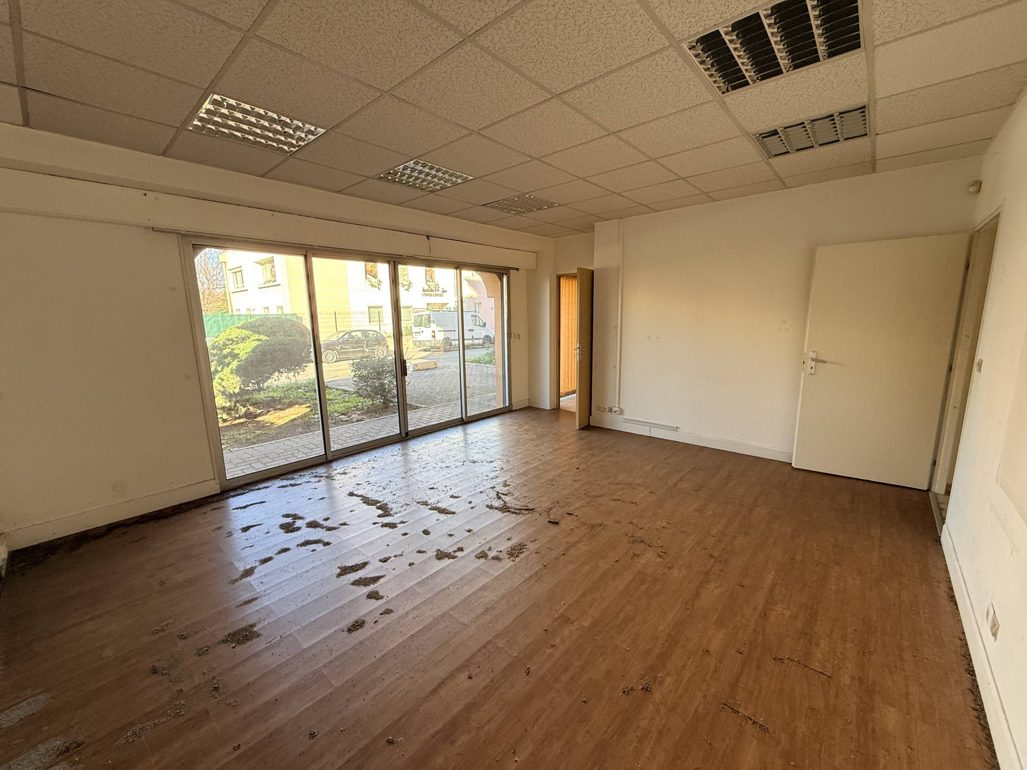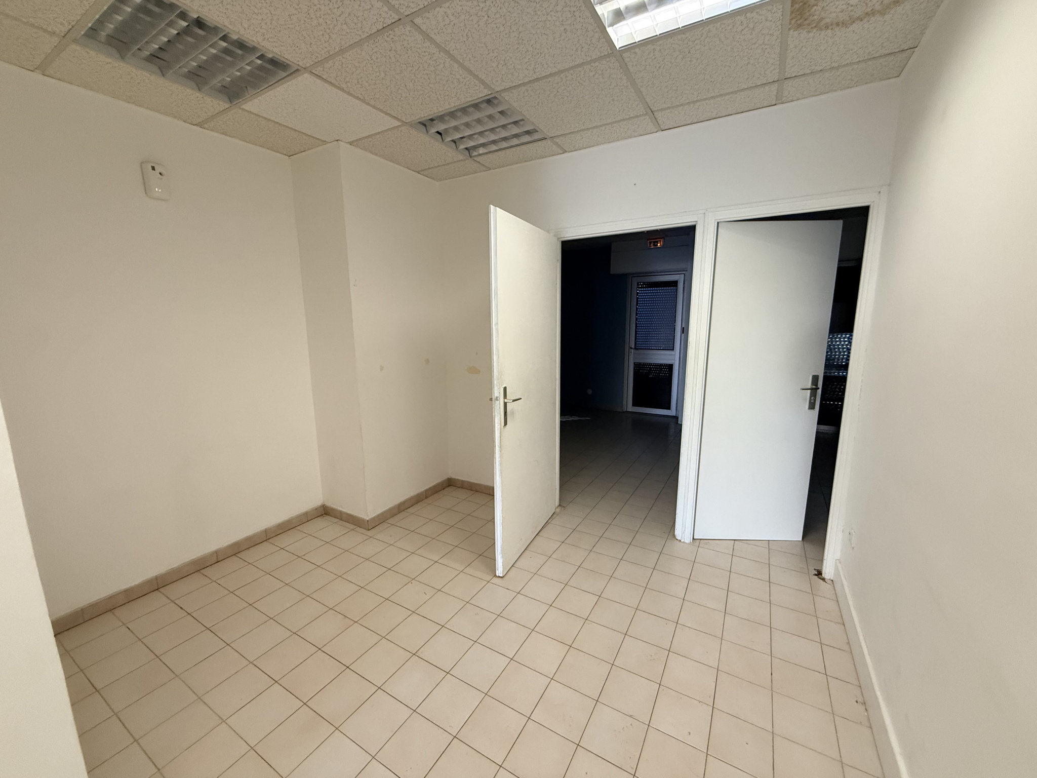 Proche centre ville, local commercial traversant d'environ 130m2 composé d'une grande entrée, de 3 bureaux , d'une pièce borgne, toilettes. 4 places de parking.