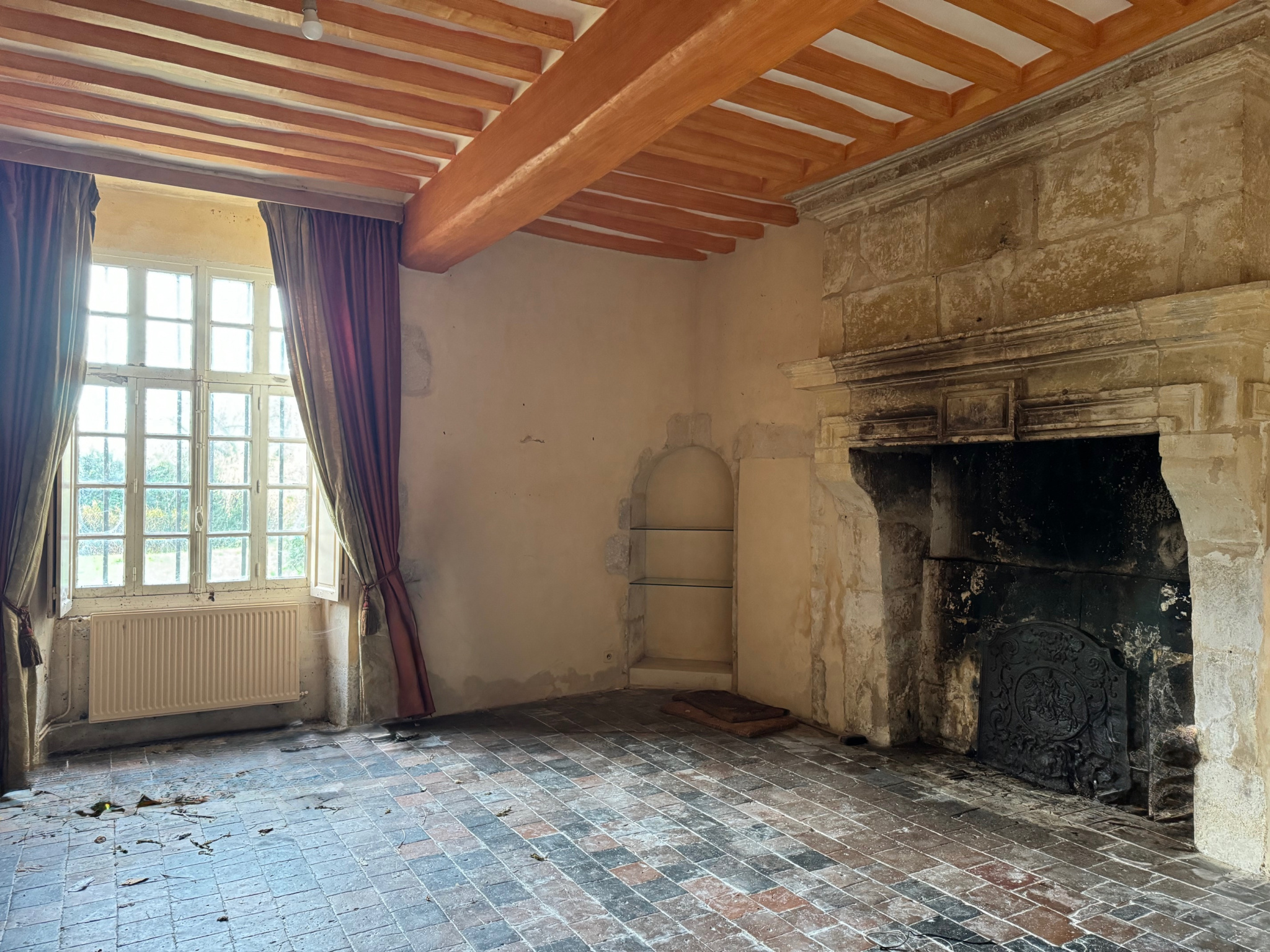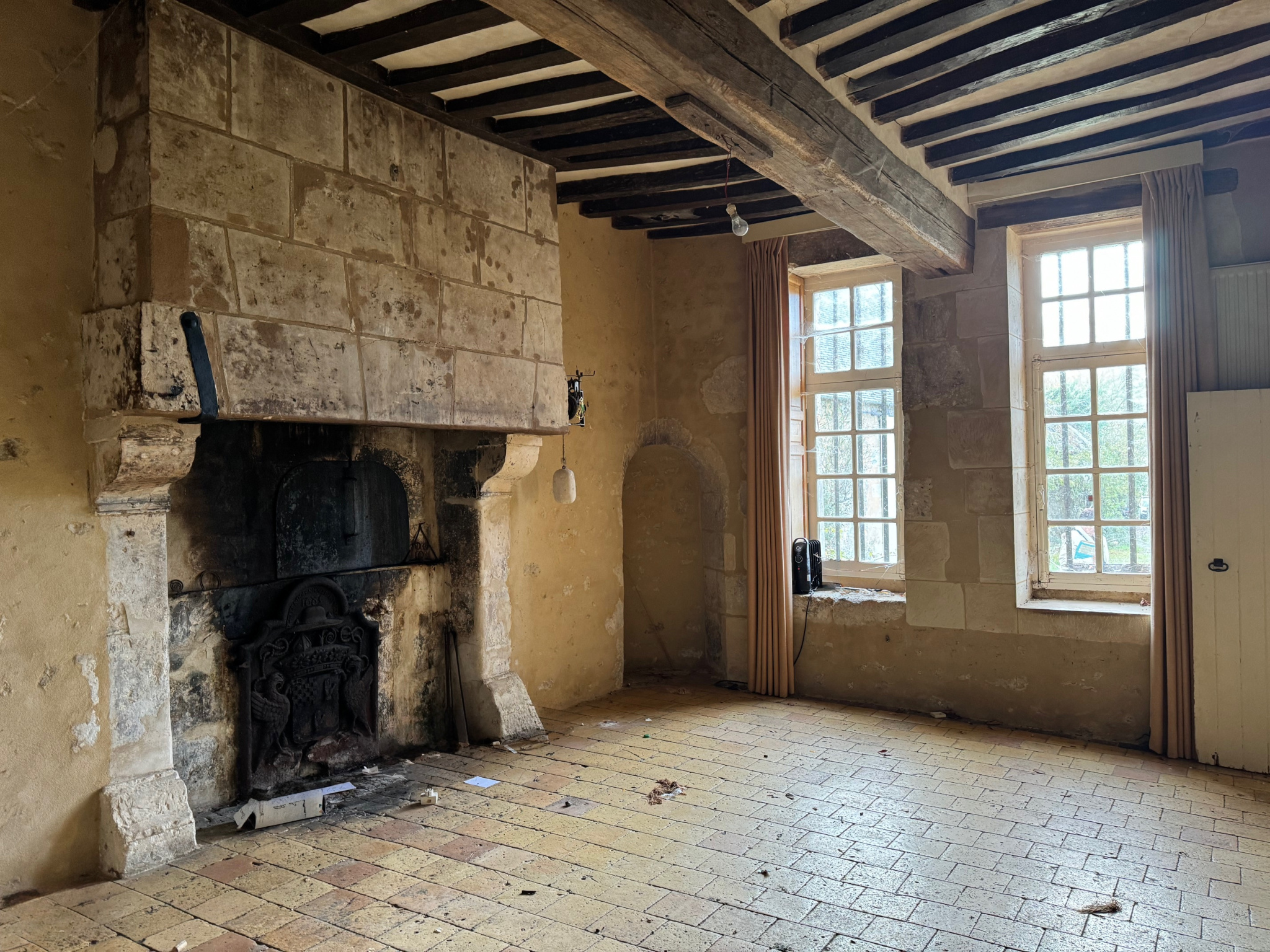 Ce manoir a conservé l'âme de son époque à travers ses éléments d'origine : poutres apparentes, tomettes anciennes, cheminées monumentales, tour emblématique... Le rez-de-chaussée accueille une entrée, un élégant salon de 40 m2 avec cheminée, une salle à manger de 25 m2 également dotée d'une cheminée, une cuisine, une buanderie ainsi qu'une salle de bains avec WC.