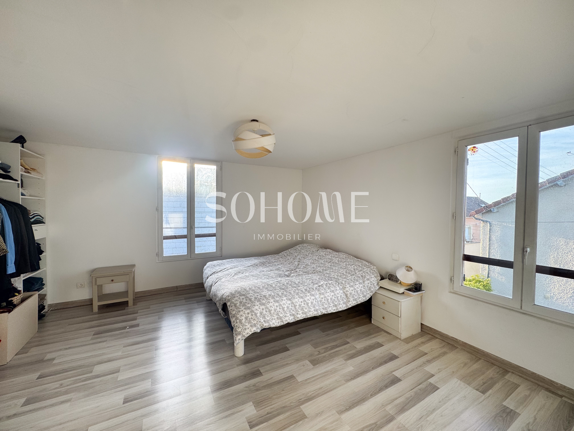 À l'étage, un vaste palier de plus de 23m2 distribue trois chambres, comme autant de refuges calmes où la praticité de la maison se prolonge.