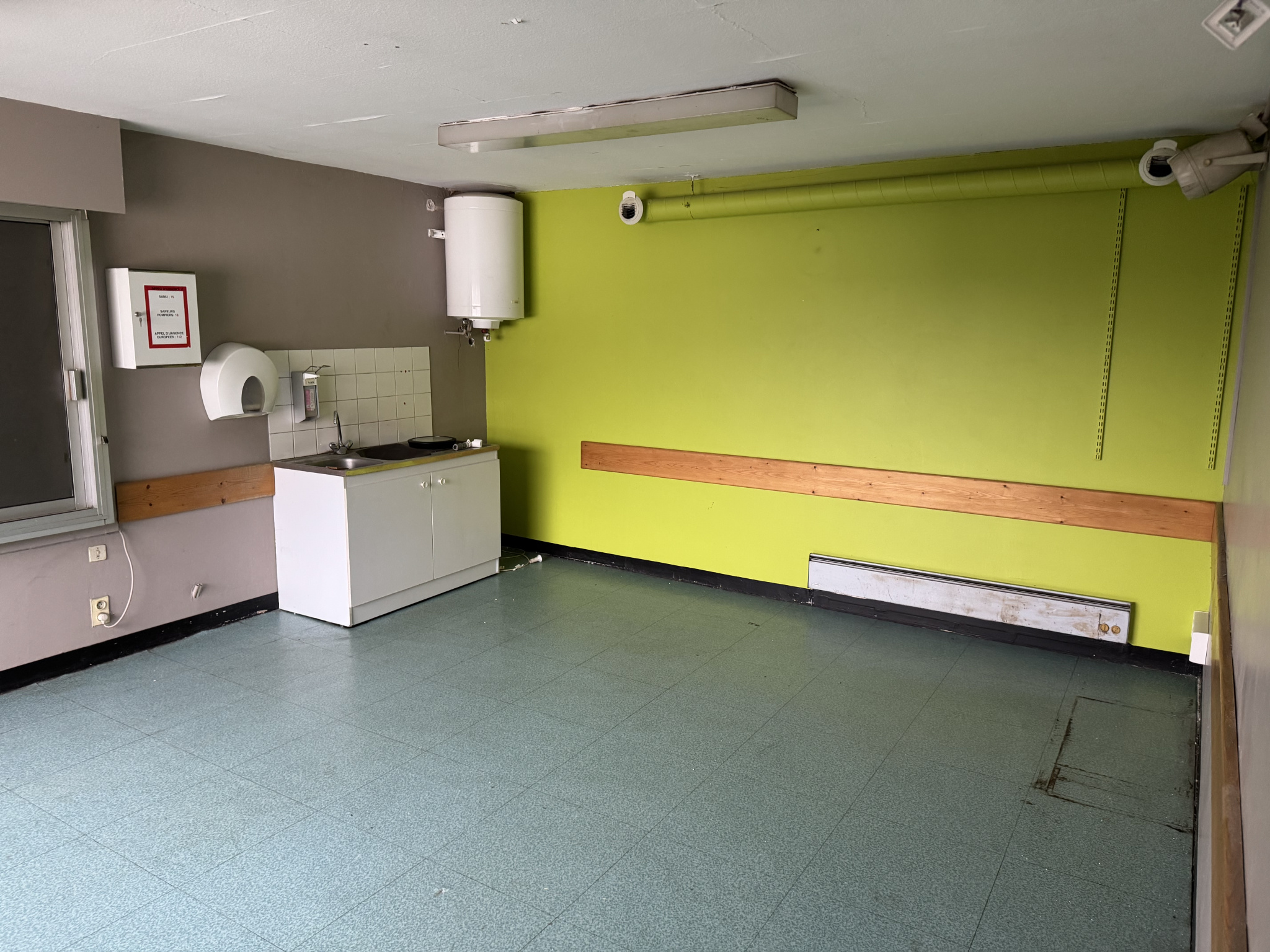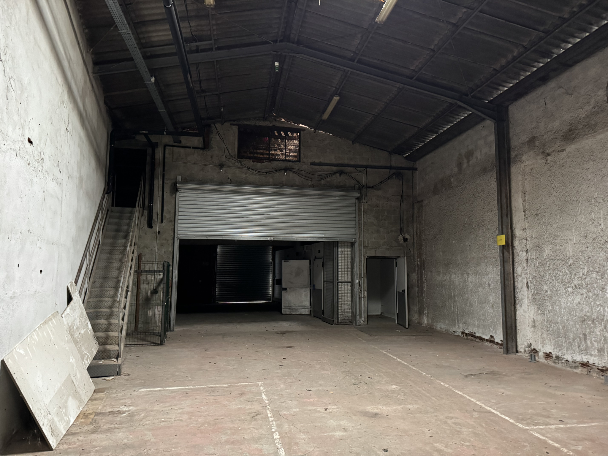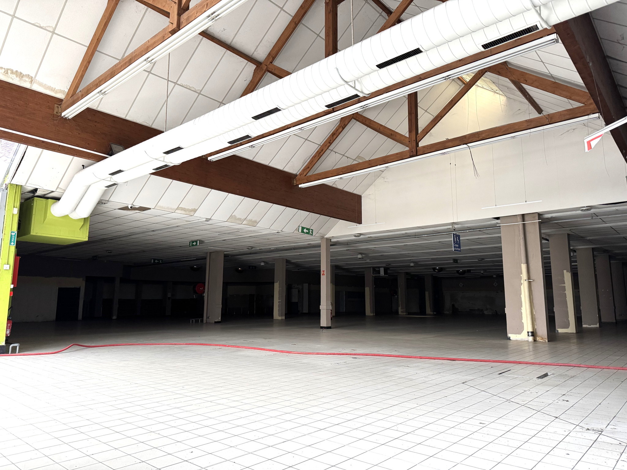 Bâtiment avec bureau, réserve, surface de stockage, surface de vente et parking.