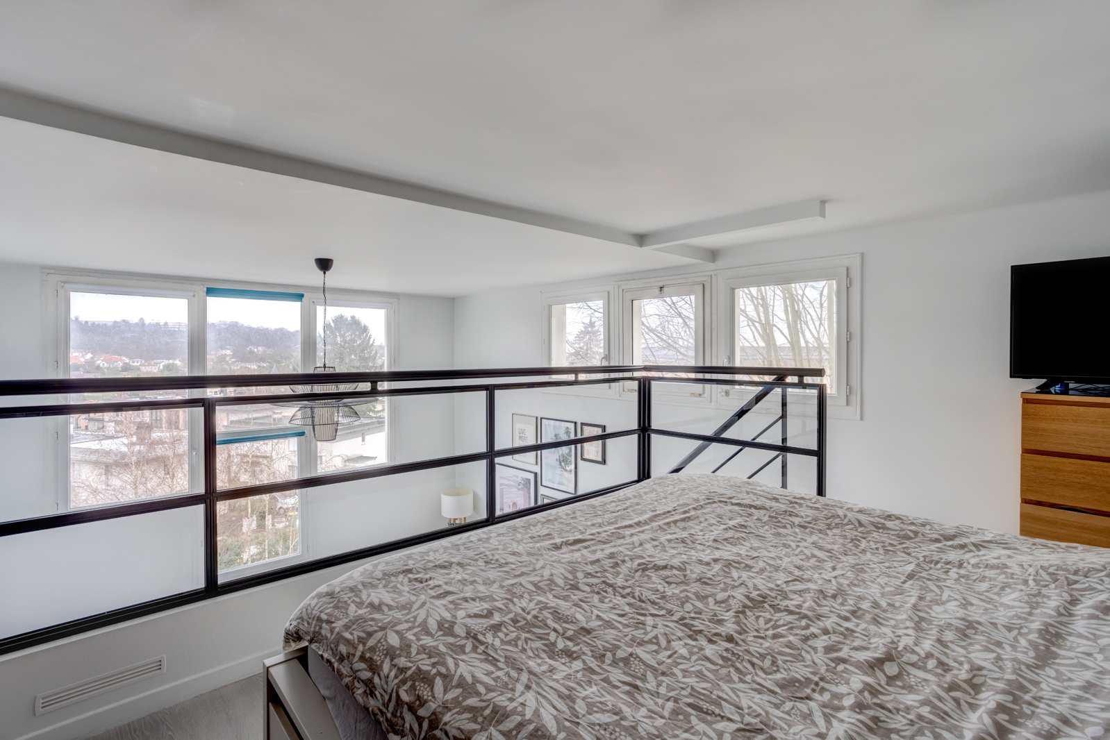 Côté nuit, au niveau principal, un dégagement dessert deux chambres confortables, un dressing indépendant, une salle d'eau moderne ainsi que des WC séparés avec fenêtre. En mezzanine, une troisième chambre entièrement reconstruite offre un espace idéal pour une suite parentale ou un bureau au calme.