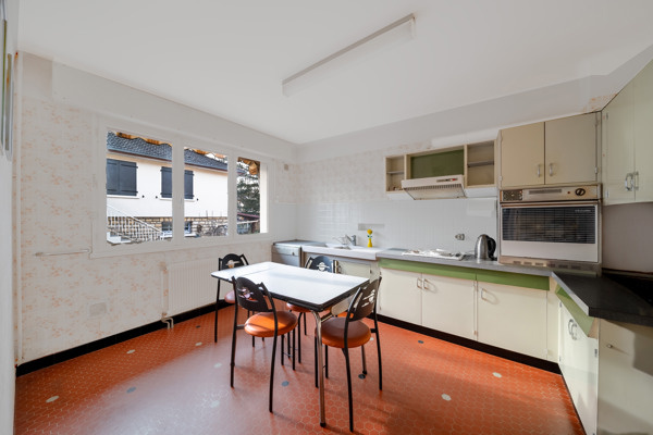 - au rez de chaussée : belle entrée lumineuse, séjour 32 m2 sol parquet avec cheminée INSERT , grande cuisine, une chambre, WC, salle d'eau
