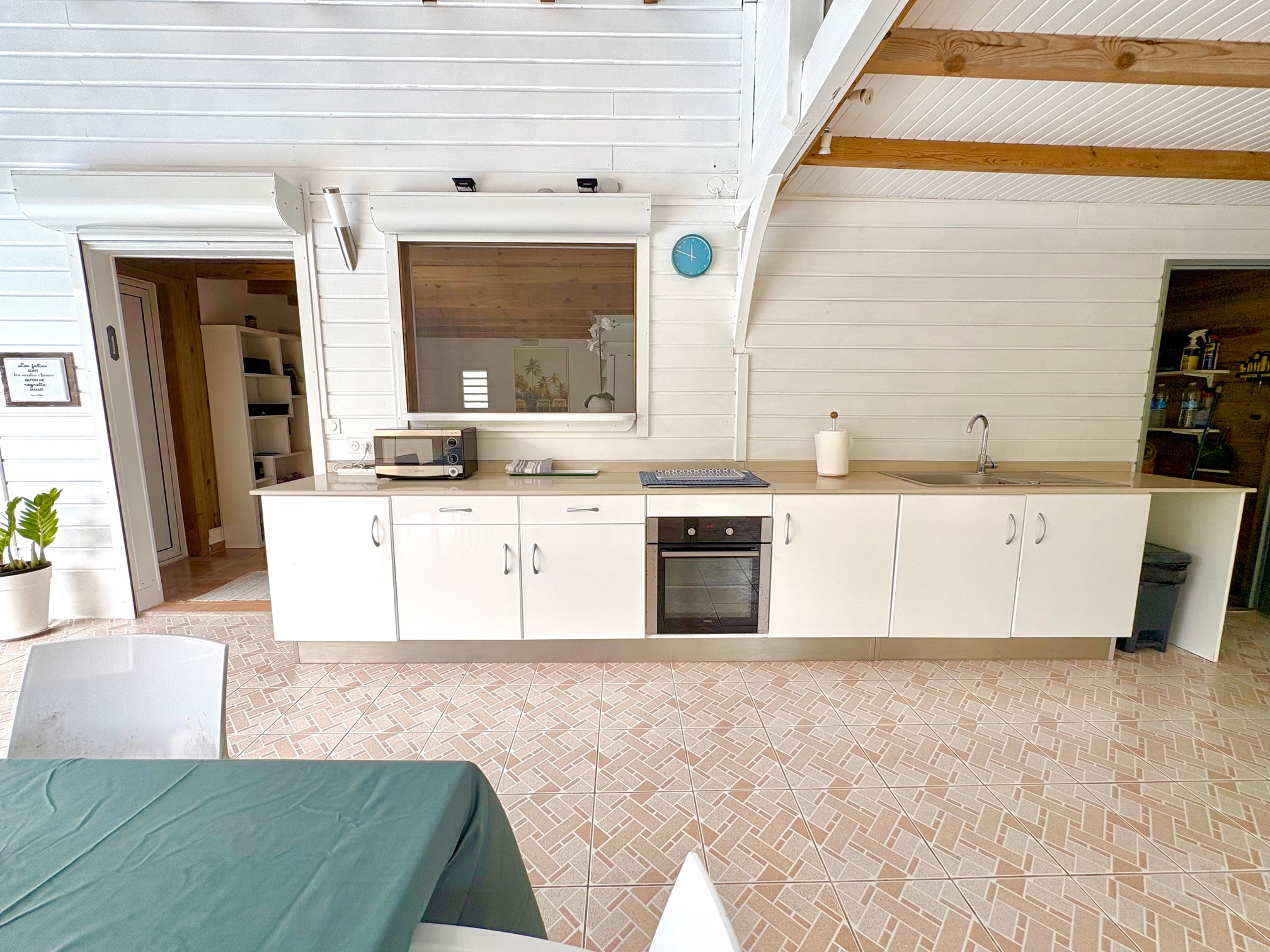 Maison F3/4 meublée et équipée d'une surface totale d'env. 119 m2 (terrasse comprise), nichée dans 1 petit jardin tropical intimiste à seulement 2 km de la plage des Raisins Clairs et du collège. Composée de 1 salon, 2 chambres climatisées avec rangement, 1 salle d'eau, 1 WC séparé, 1 grande terrasse d'env. 55m2 avec cuisine US équipée et agencée, pièce convivale avec son coin repas et son salon extérieur, 1 pièce débarras/buanderie d'env. 16m2, 1 piscine, 1 citerne bac tampon, 1 CE solaire. Jardin clos d'env. 270 m2. Place de parking. Idéal pour un pied à terre en Guadeloupe ou pour revenus locatifs touristiques et/ou longue durée. Pour plus d'informations contacter Laurence CAILLET par WHATSAPP et SMS au +590 690 002 312 ou par SMS au 0690 35 97 18 et par mail : laurence@immo971.com et/ou cailletlo971@gmail.com en laissant vos coordonnées et l'objet de votre appel.