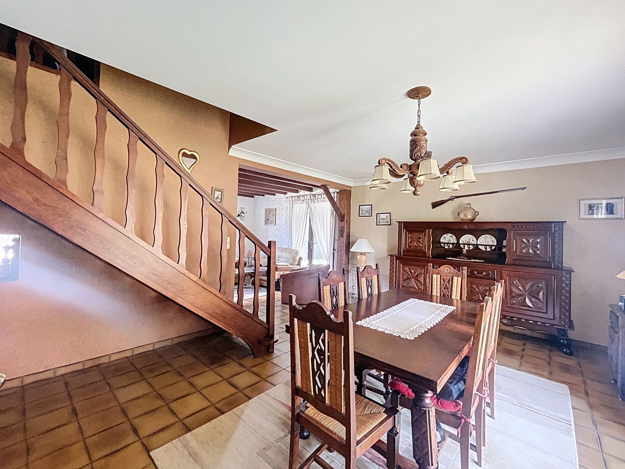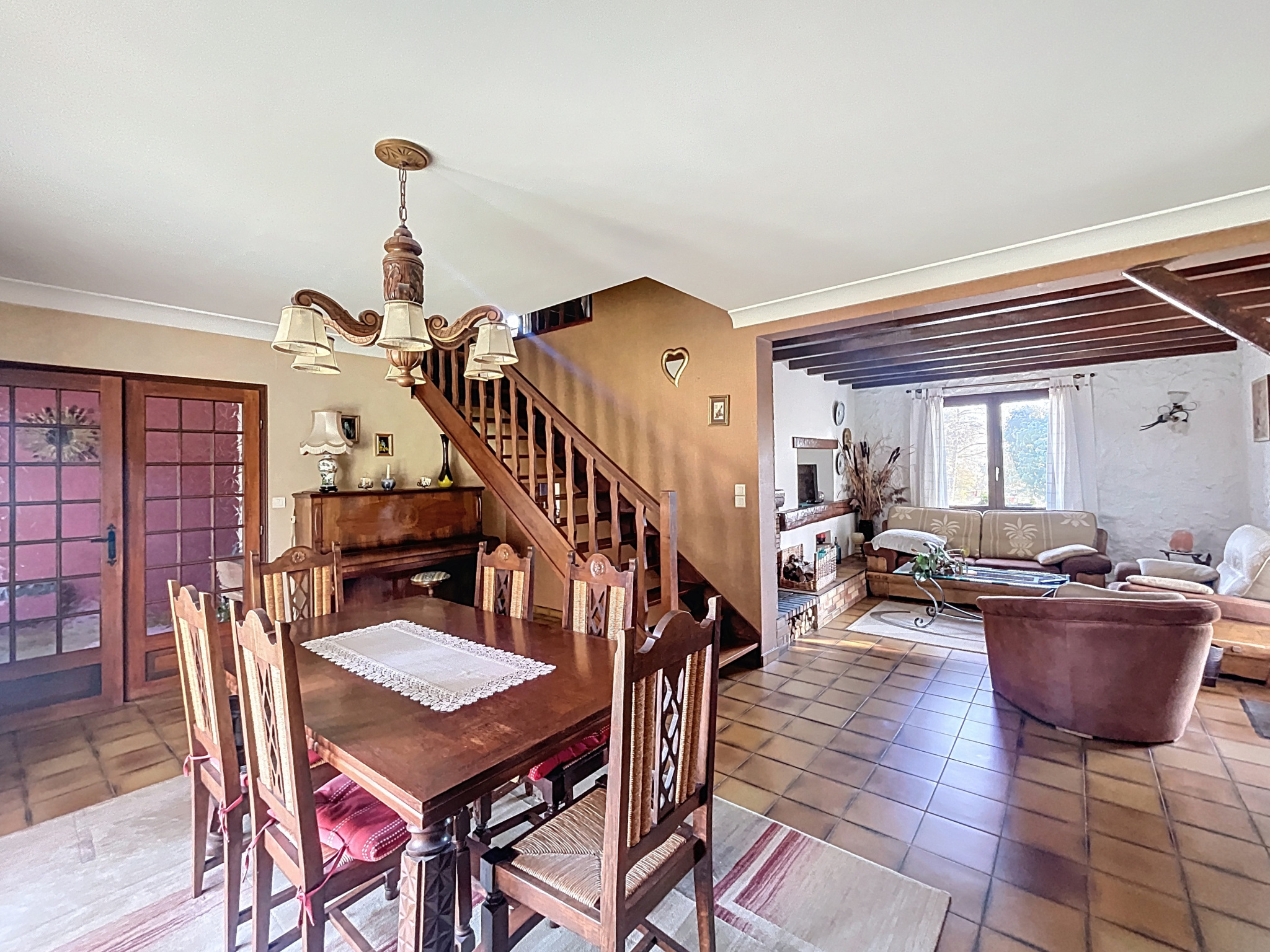 À VELAINES, dans un cadre calme et verdoyant, découvrez ce pavillon de 1976, individuel et habitable de plain-pied d'environ 116m2, implanté sur un vaste terrain clos de plus de 6000m2 et arboré traversé par un bief et agrémenté d'un bassin. Il se compose, au rez-de-chaussée, d'un séjour lumineux, d'une cuisine séparée, d'un bureau pouvant faire office de chambre, d'une salle de bains et de WC indépendants. À l'étage, vous trouverez trois chambres ainsi qu'une seconde salle de bains avec WC. Le bien dispose également d'un vaste sous-sol comprenant garage, cave et buanderie. À l'extérieur, deux terrasses, un appentis pour deux véhicules et un espace de stationnement complètent l'ensemble. Un cadre idéal pour les amateurs de tranquillité et de nature.
