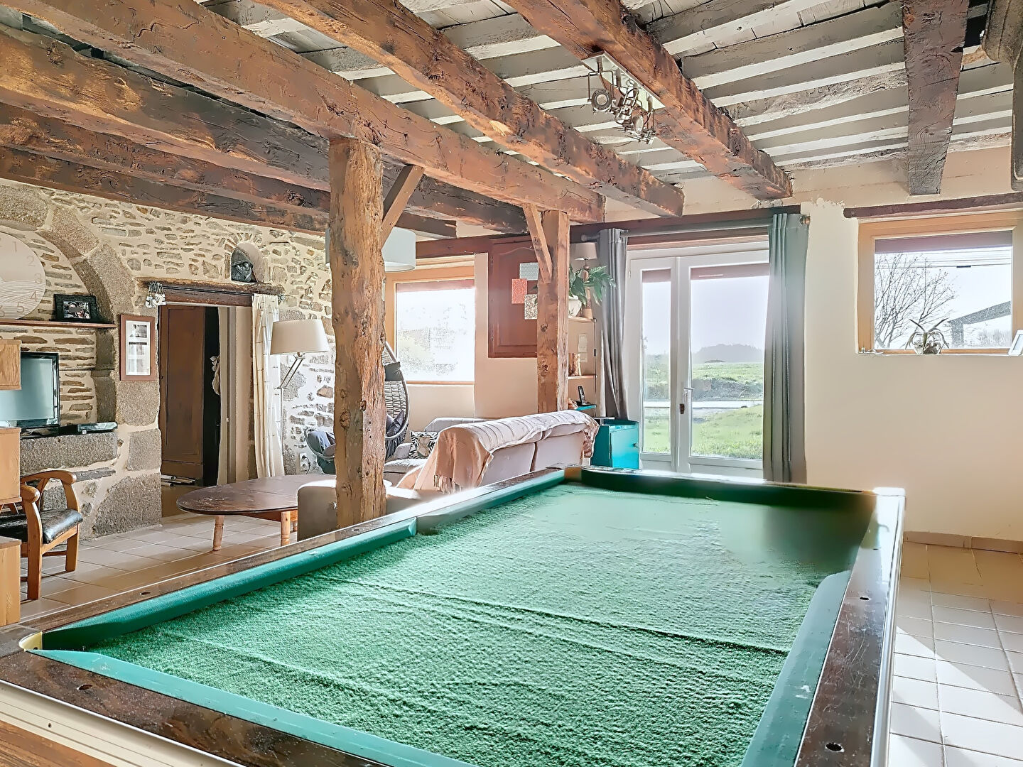 Espace de vie : Un vaste salon et un double séjour baignés de lumière, agrémentés d'un poêle à granulés performant pour des soirées d'hiver cocooning.