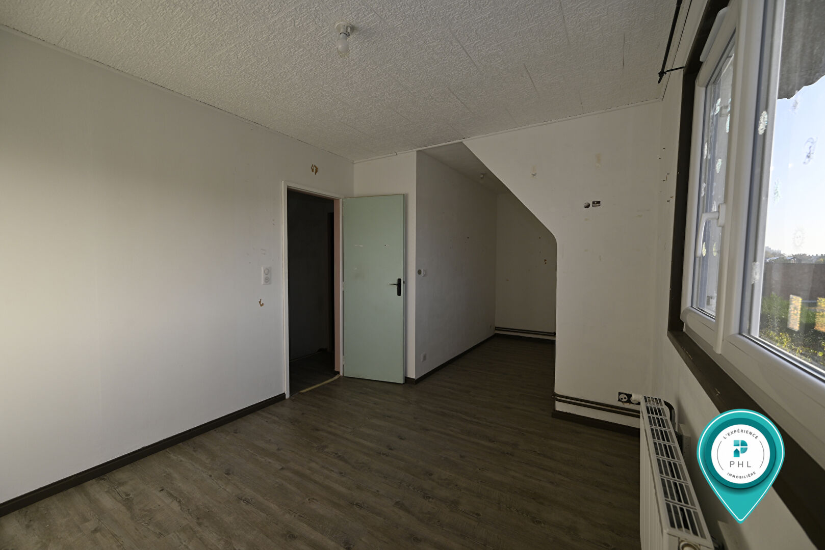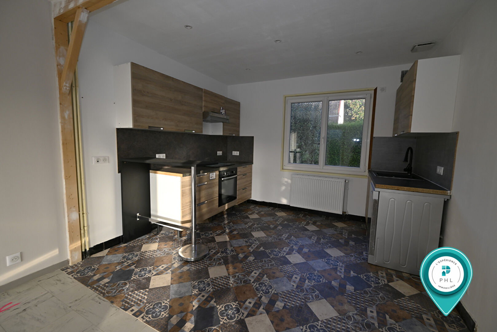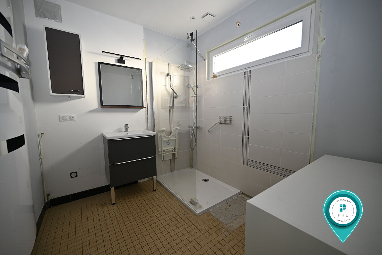 Comprenant au RDC : entrée avec placard, cuisine équipée et aménagée ouverte sur le séjour, chambre, salle d'eau avec douche à l'italienne à finir, et WC indépendant.