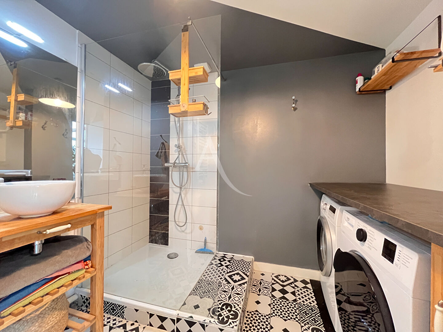 À l'étage, un palier dessert deux chambres confortables, dont une véritable suite avec salle d'eau privative équipée d'une baignoire. Des WC sont présents à chaque niveau pour un confort optimal.
