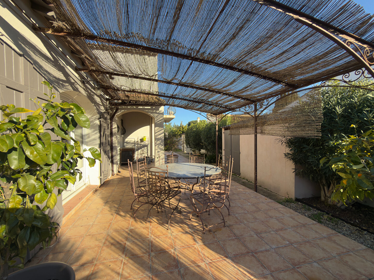 espace repas sous pergola