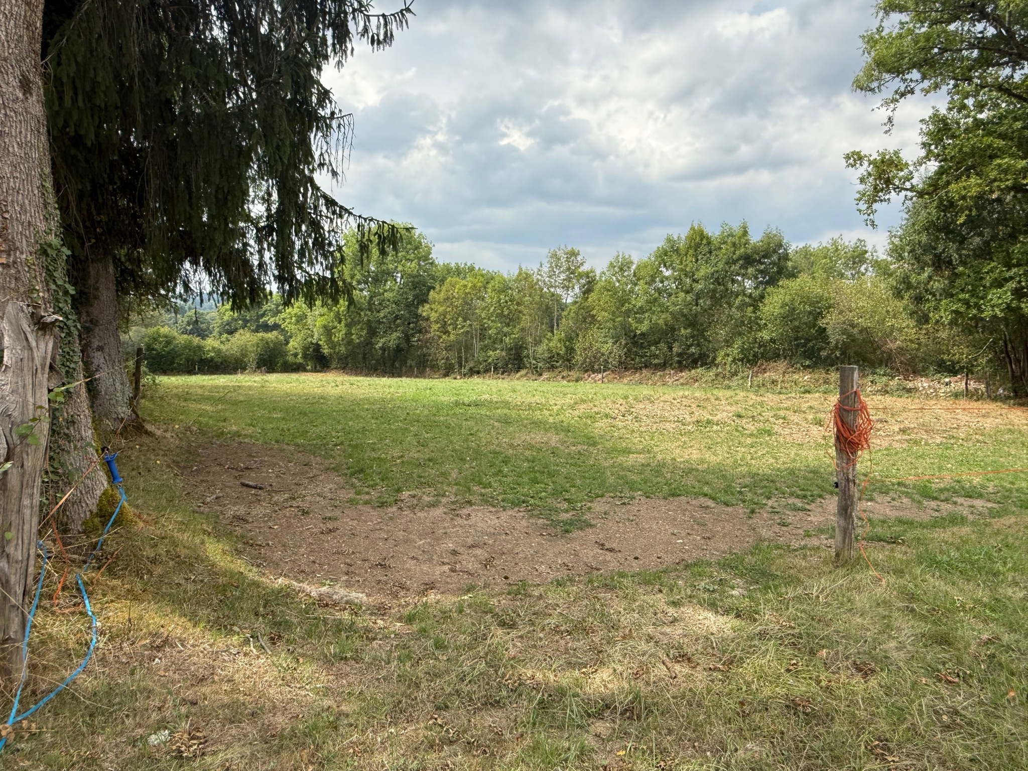 Auv 1193 : Maison au calme avec gîte, puits, beau terrain 5.340m2 Cet ensemble est resté inoccupé depuis un certain temps et doit donc être remis en état et poursuivi dans sa rénovation. La partie droite de la toiture a été entièrement refaite cette année. La situation très calme et le terrain sont des atouts indéniables pour y développer un beau projet. La maison située à gauche a une surface intérieure de 42m2 et comprend 3 niveaux ainsi qu'une cave sous la grange. Au rez-de-chaussée, on trouve un vaste séjour avec carrelage neutre, une belle cheminée, un coin cuisine, une salle d'eau avec douche, WC et lavabo, ainsi qu'un raccordement pour machine à laver. Plafond à poutres apparentes avec nouveau plancher en pin au-dessus. Hauteur entre les poutres : 2,30m, hauteur sous la poutre la plus basse : 2m. Les fenêtres sont en partie neuves et en partie d'origine à simple vitrage. Présence de volets en bois. À l'étage, un palier (7m2) dessert deux chambres (20m2 avec dressing et 7m2). Hauteur : 2m entre les poutres, 1,80m sous les poutres. Un deuxième escalier mène aux combles aménagés offrant une surface au sol de 42m2. Le lambrissage et l'isolation de la toiture sont à refaire. Toute la maison est déjà équipée en câblage électrique, avec un nouveau tableau posé mais pas encore raccordé. L'ancienne installation est toujours en service, il y a donc de l'électricité. L'ancienne grange a été transformée en gîte. La surface intérieure est de 40m2. Au rez-de-chaussée, une pièce de vie (20m2) avec coin cuisine, hauteur sous plafond 6m. Quelques marches plus haut, sur la droite, se trouve un espace de 20m2 comprenant une salle d'eau avec lavabo, WC et douche. Au-dessus, une chambre de 20m2. Accessible par le côté de la maison, une autre pièce de 20m2. Une fois rénové, cet ensemble aura beaucoup de charme. Le terrain est relativement plat, en grande partie en prairie avec de nombreux grands arbres. La fosse toutes eaux fonctionne mais n'est pas conforme. La maison est raccordée à l'eau de ville et dispose également d'un puits. Située dans un hameau tranquille, au bout de la route goudronnée.La dépendance en très mauvais état est cadastrée et peut donc être reconstruite.