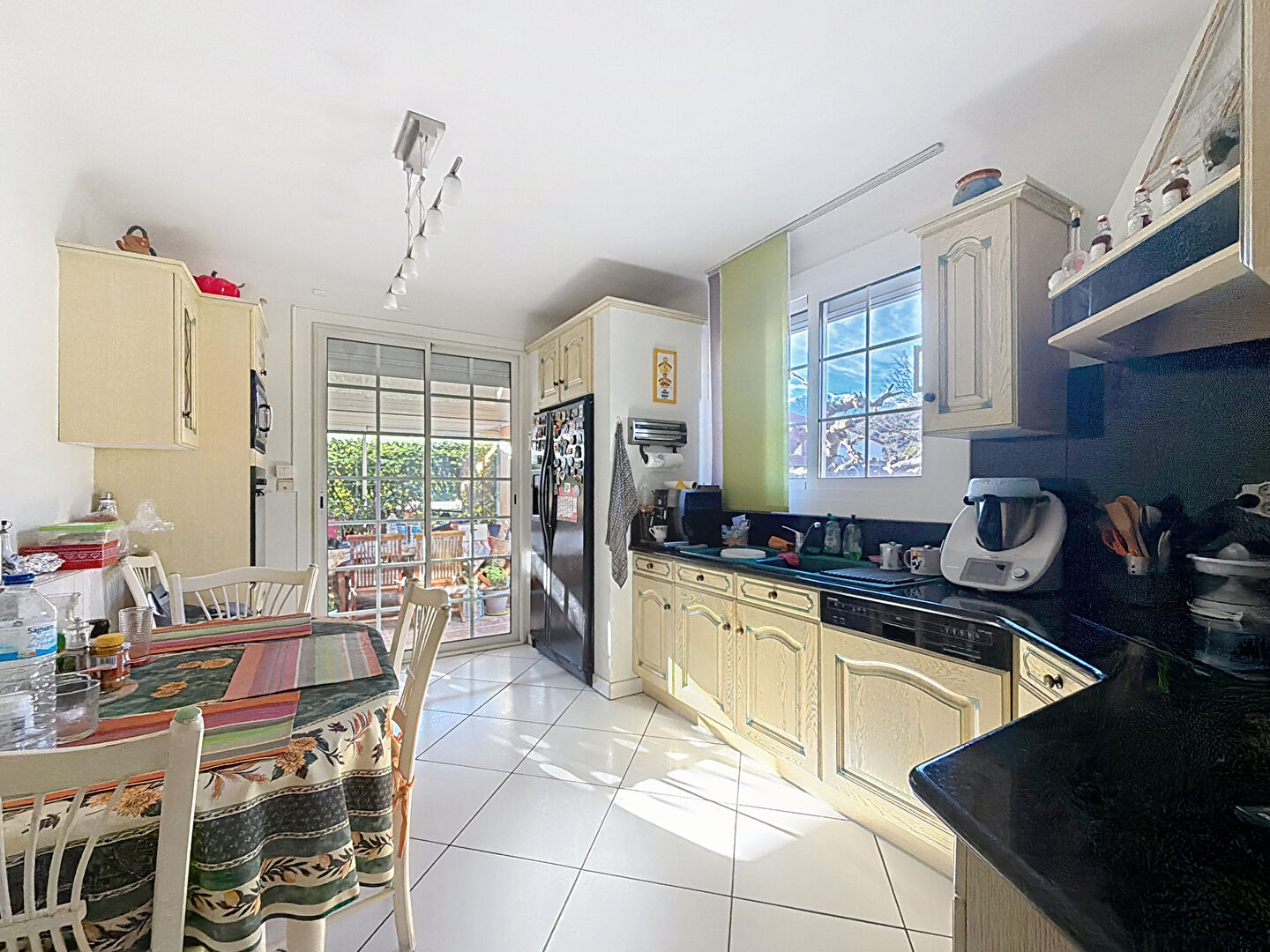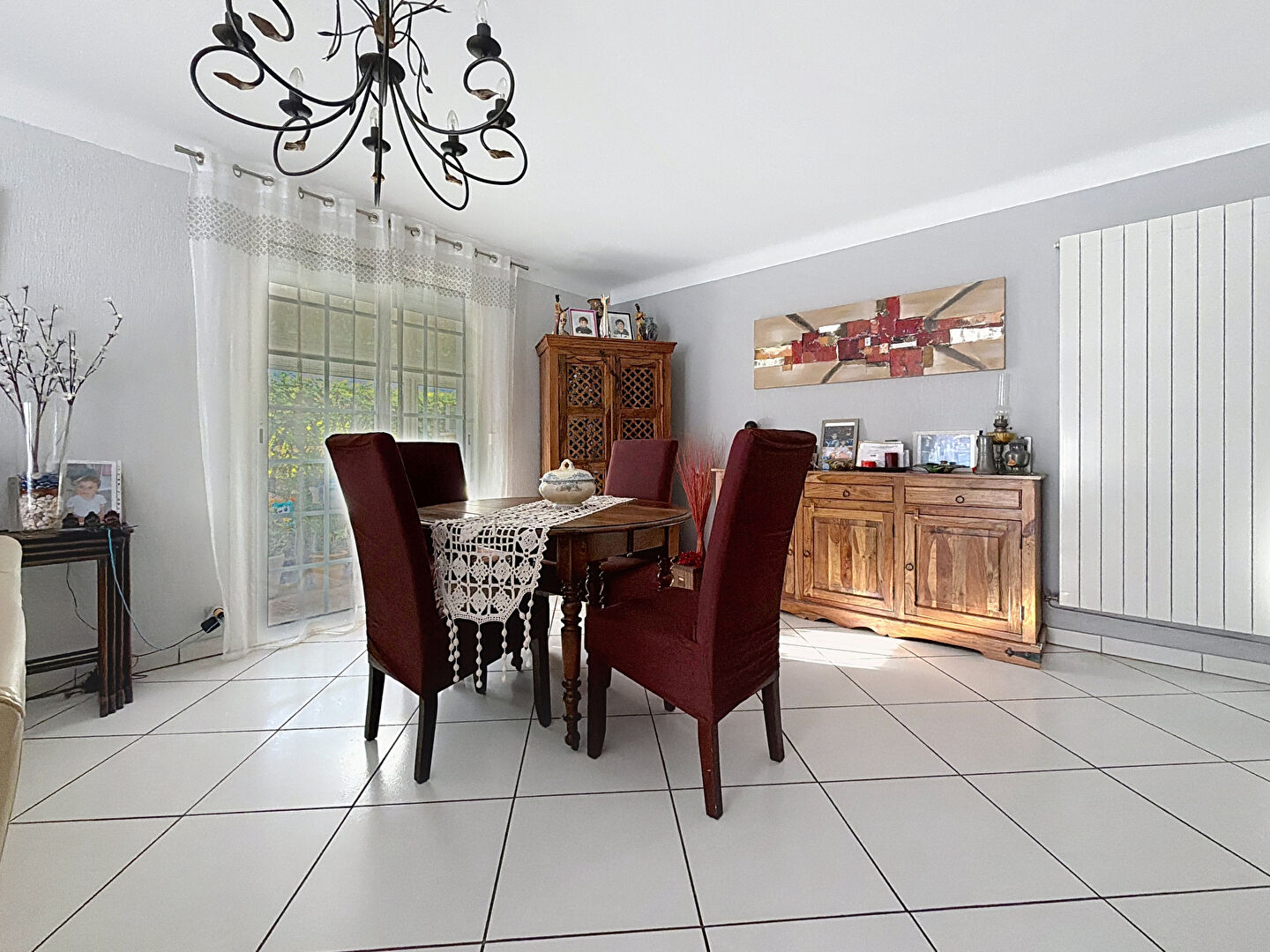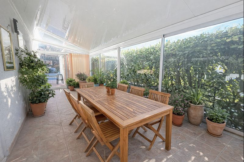 Une véranda de 19 m², véritable pièce à vivre supplémentaire, permet d'accueillir de grands repas familiaux en toute saison, avec une belle ouverture sur l'extérieur.