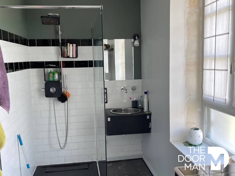 Au RDC : la pièce de vie avec cuisine ouverte de 42m² (cuisine équipée avec piano et hotte ; cheminée), une chambre de 20m², une salle d'eau (douche à l'italienne, vasque, wc, sèche serviettes), une buanderie avec accès sur la cour intérieure de 100m² à l'abri des regards.