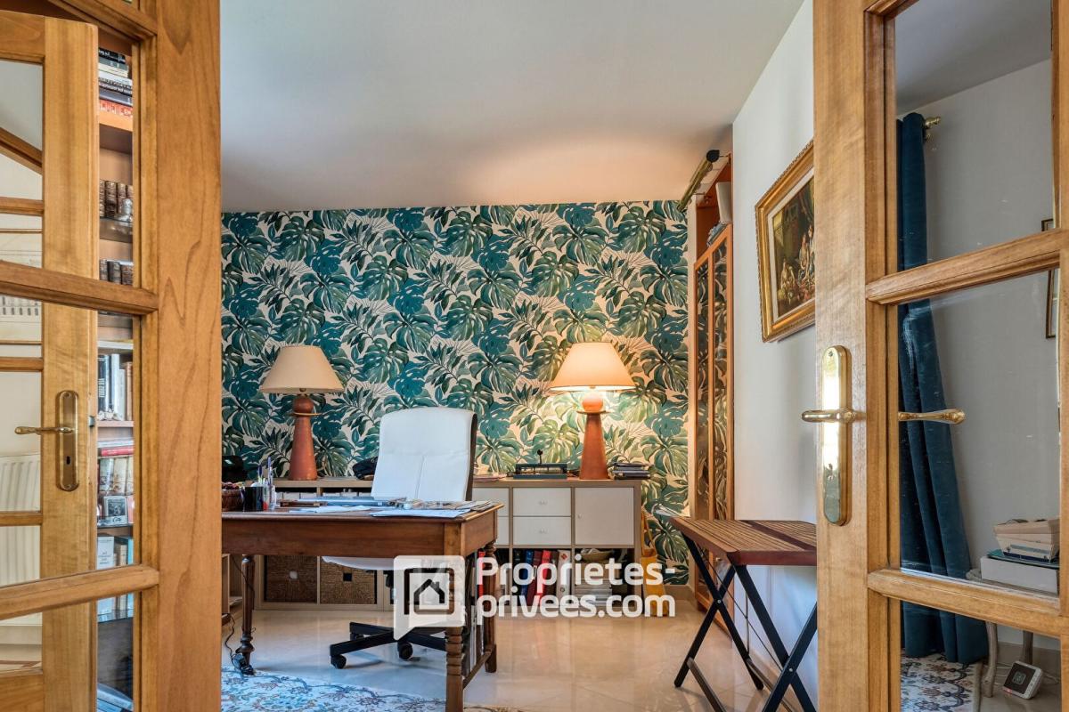 Au rez-de-chaussée, un vaste hall d'entrée avec une belle hauteur sous plafond s'ouvre sur un séjour lumineux de 63 m², prolongé par une grande terrasse ensoleillée avec piscine avec pool house : exposition plein sud.