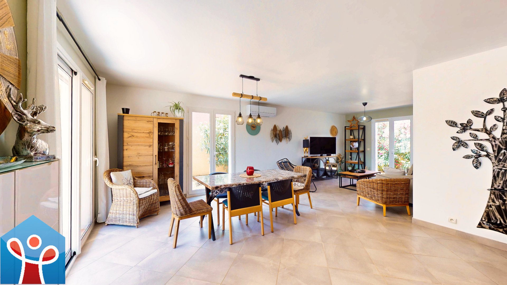 Le bien est en excellent état et propose de belles prestations : cuisine équipée, climatisation réversible, portail motorisé, volets bois, baie vitrée, menuiseries PVC, terrasse carrelée et deux places de stationnement.