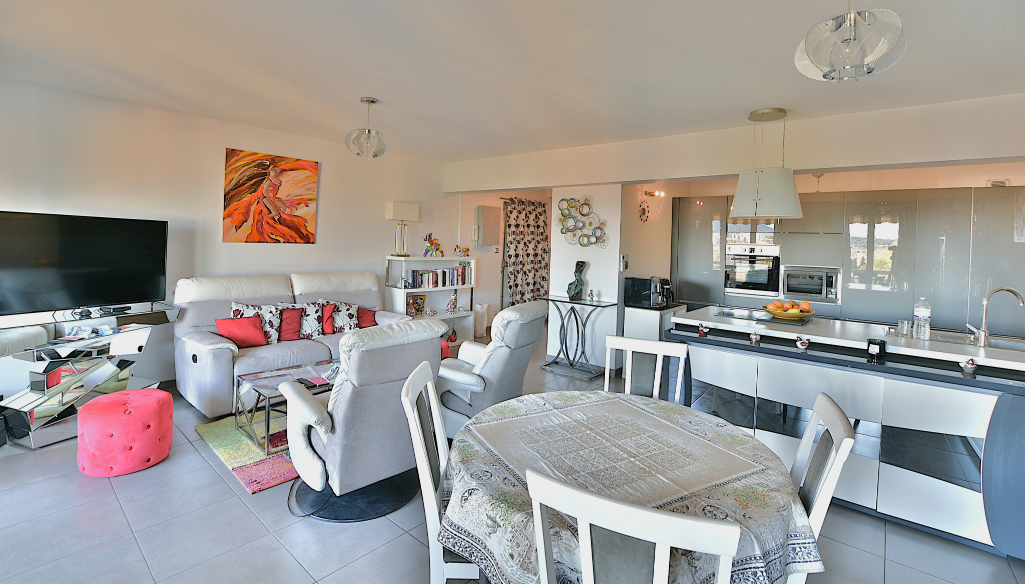 Séjour / cuisine ouverte de 37,15m2 donnant sur le balcon de 10m2