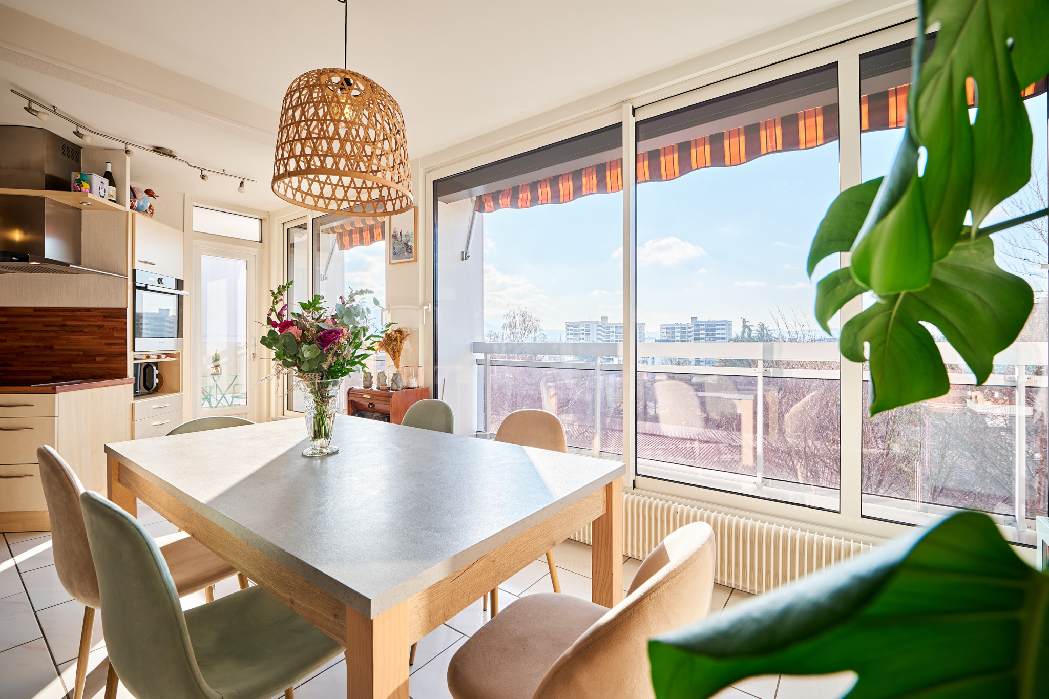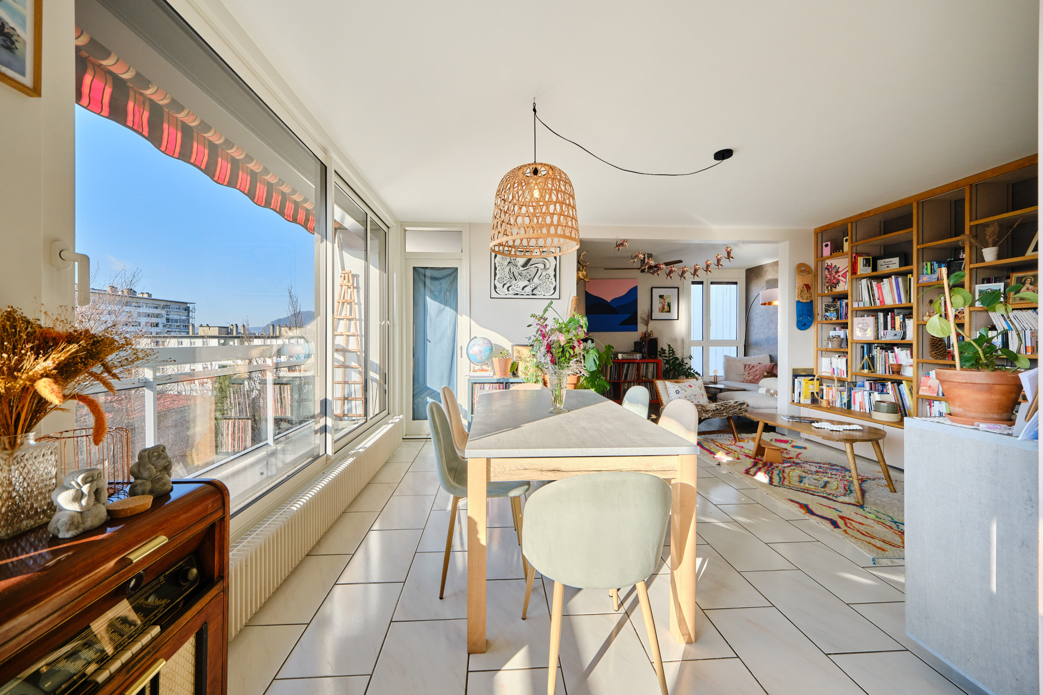 Un bien rare par ses grands volumes, sa hauteur, sa vue et son organisation idéale pour une famille, dans le quartier dynamique des Teppes à Annecy.