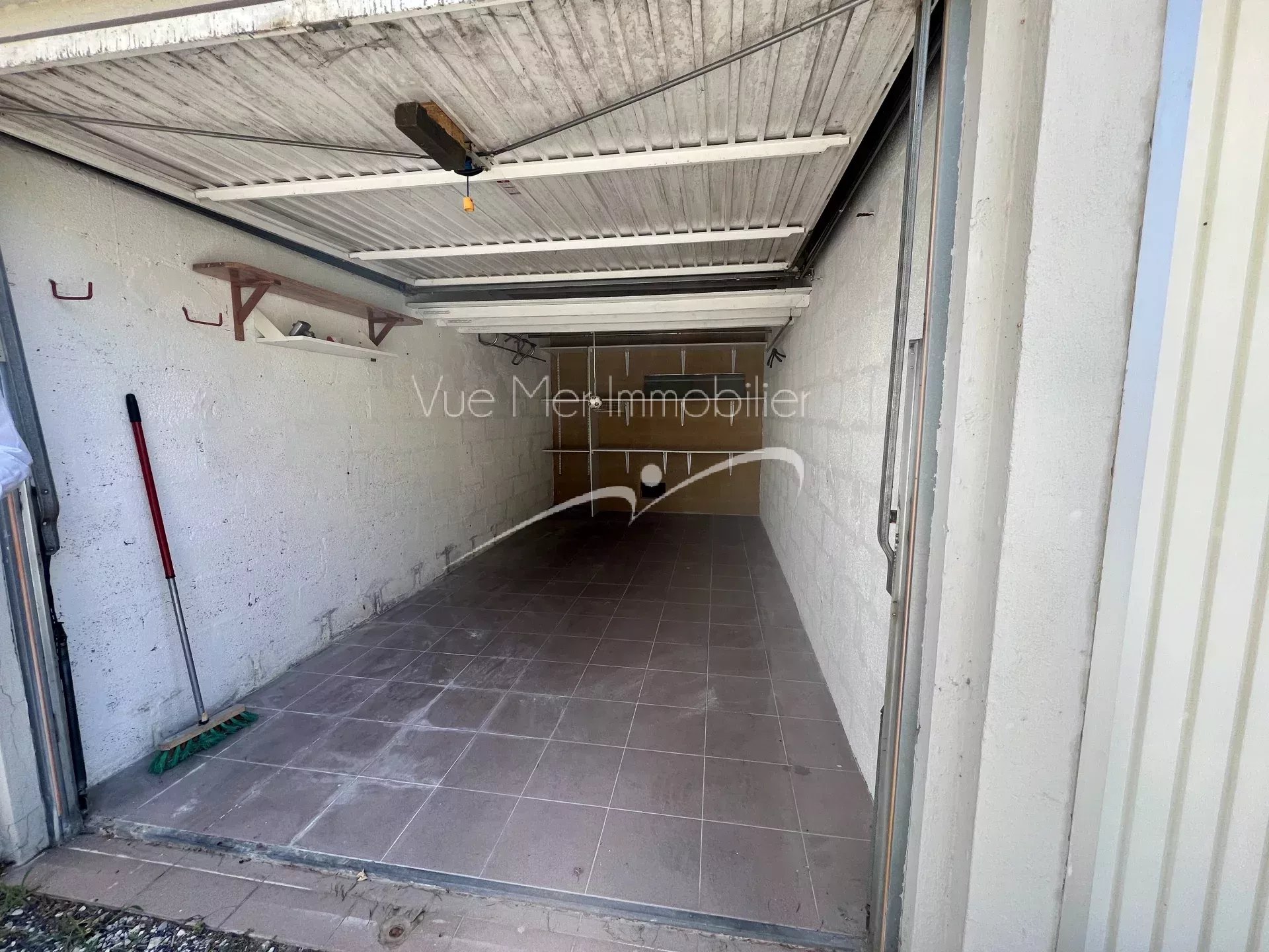 Garage carrelé d’une surface de 13,39 m² (2,61m x 5,13m).