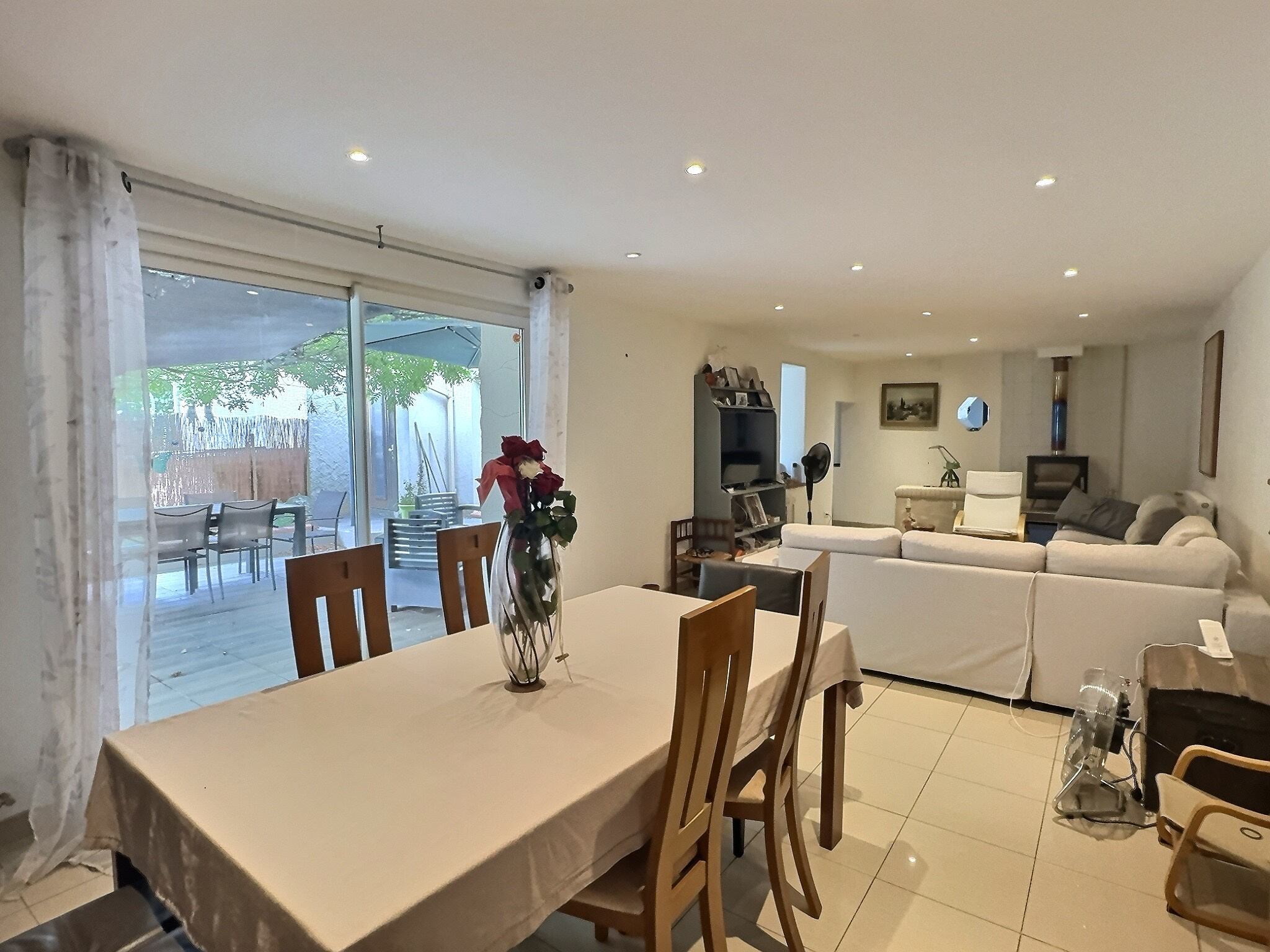 Mitoyenne d'un seul côté, elle s'ouvre sur un jardin paysagé de 800 m2, une oasis discrète où se mêlent le chant des oiseaux et l'odeur des repas d'été. Sur deux niveaux, ses 180 m2 habitables accueillent un grand séjour baigné de lumière, une vaste cuisine conviviale avec son coin cuisson et son espace repas, quatre chambres douillettes, une salle de bains, une salle d'eau et deux toilettes. Rénovée avec soin et de bon gout, cette Maison est trés chaleureuse.