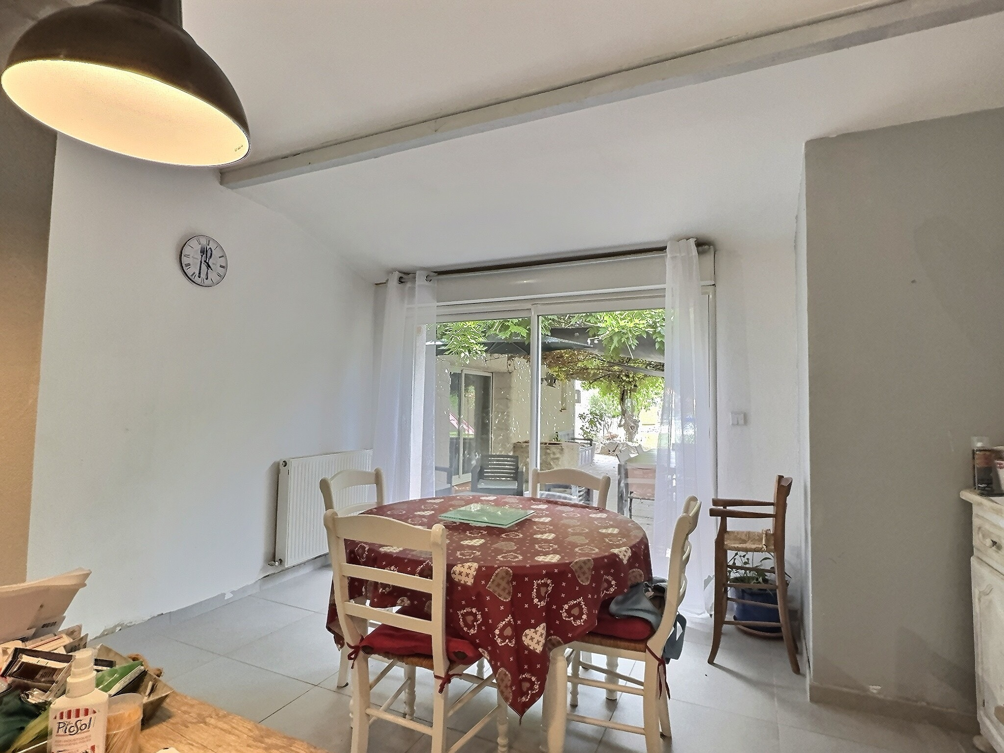 À l'extérieur, une belle terrasse ombragée par une pergola végétalisée invite à la détente.