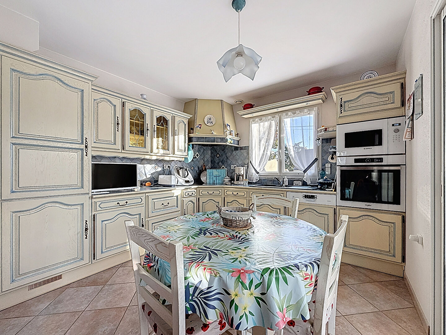 La véranda, lumineuse et agréable, constitue un espace supplémentaire apprécié en toute saison.