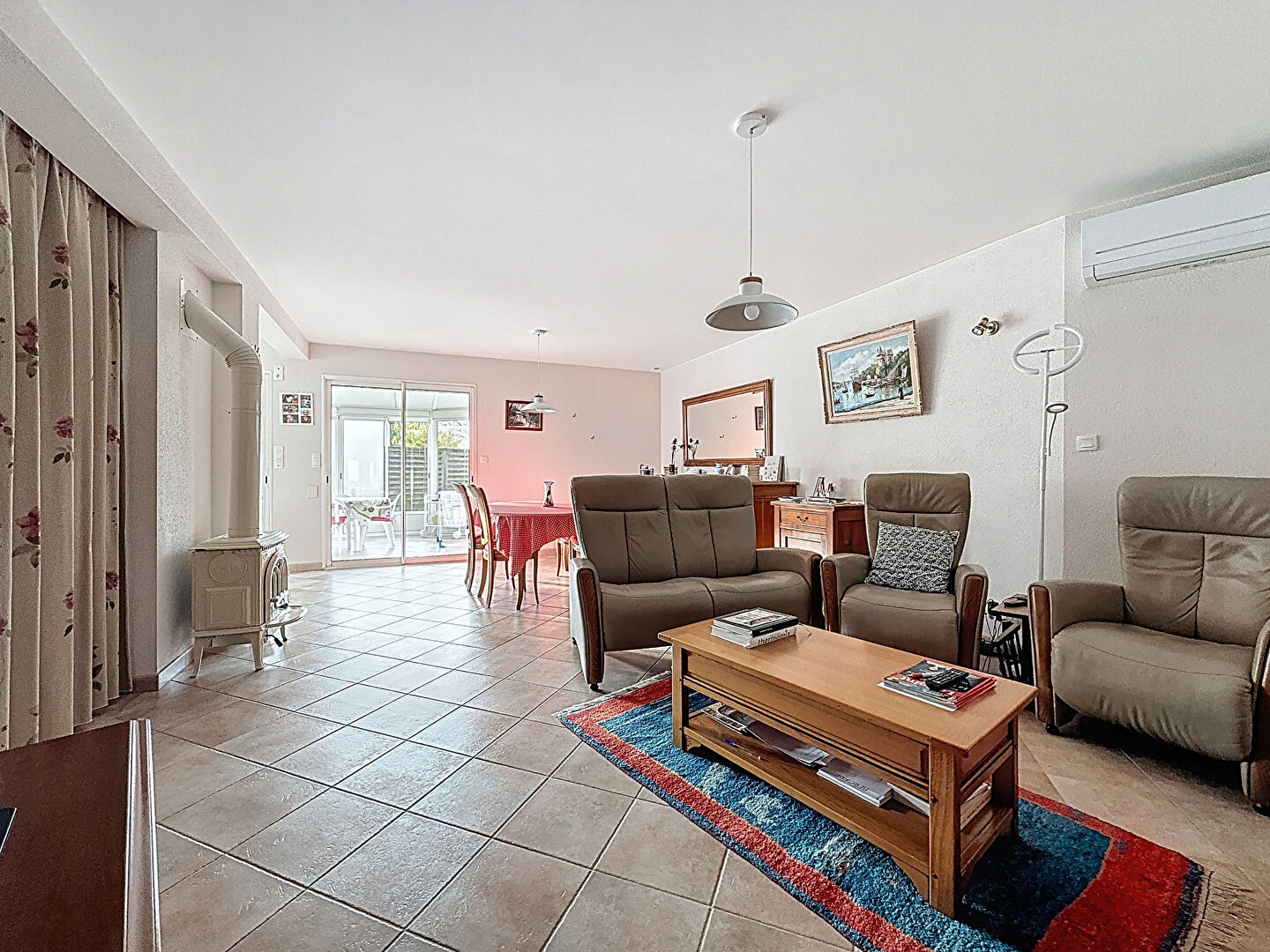 D'une surface d'environ 119 m², elle propose une vie de plain-pied, trois chambres bien agencées et des espaces pensés pour un usage simple et fonctionnel. La maison bénéficie d'un excellent confort thermique, été comme hiver, grâce à ses pompes à chaleur air/eau et air/air, ainsi qu'à une isolation performante (DPE B).