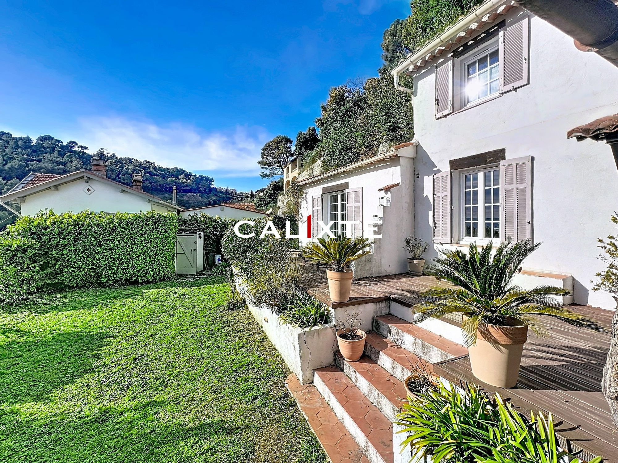 Arrivée dans le jardin plat et clos, vous aurez devant vous un des plus beau paysage de la Côte d'Azur avec une échappée mer imprenable au loin.