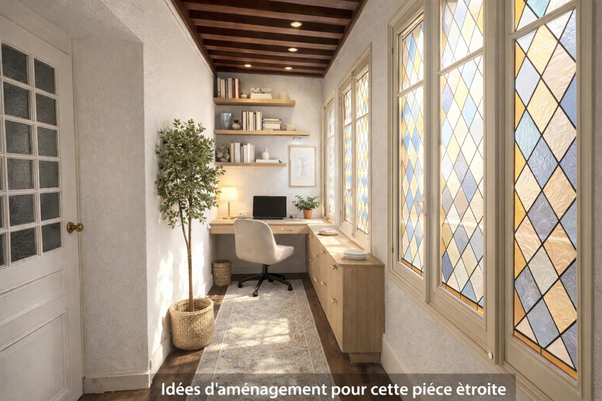Des idées d'aménagement -peinture des murs et plafonds + ameublement- vous sont présentées sur le séjour, la cuisine et le bureau. (photos non contractuelles).