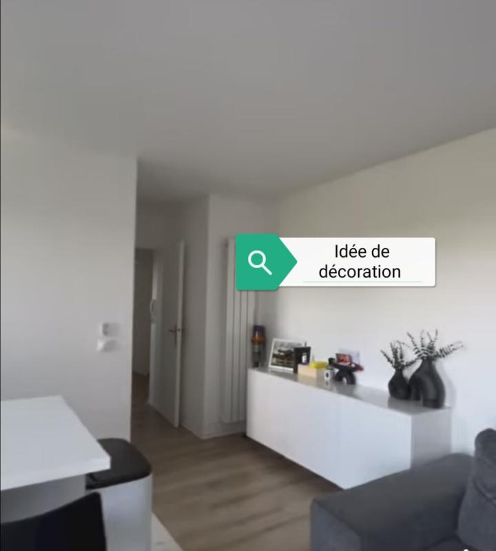 Cuisine aménagée donnant sur la pièce de vie 28 m²1ch20m² parquet chêne moyen et 112m²Salle d'eau