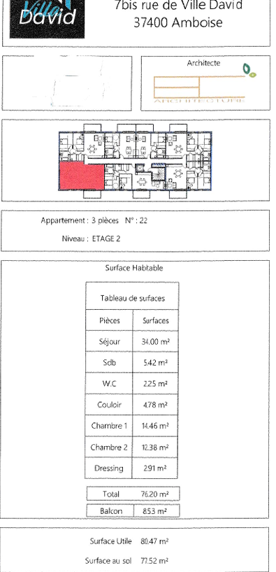 Au 2ème étage 76 M2 qui se composent d'une cuisine ouverte sur un salon-sejour donnant sur un balcon, deux chambres, un dressing, une salle de bain. Places de parking. Vente en l'état futur d'achèvement. Livraison prévue fin mai 2025.