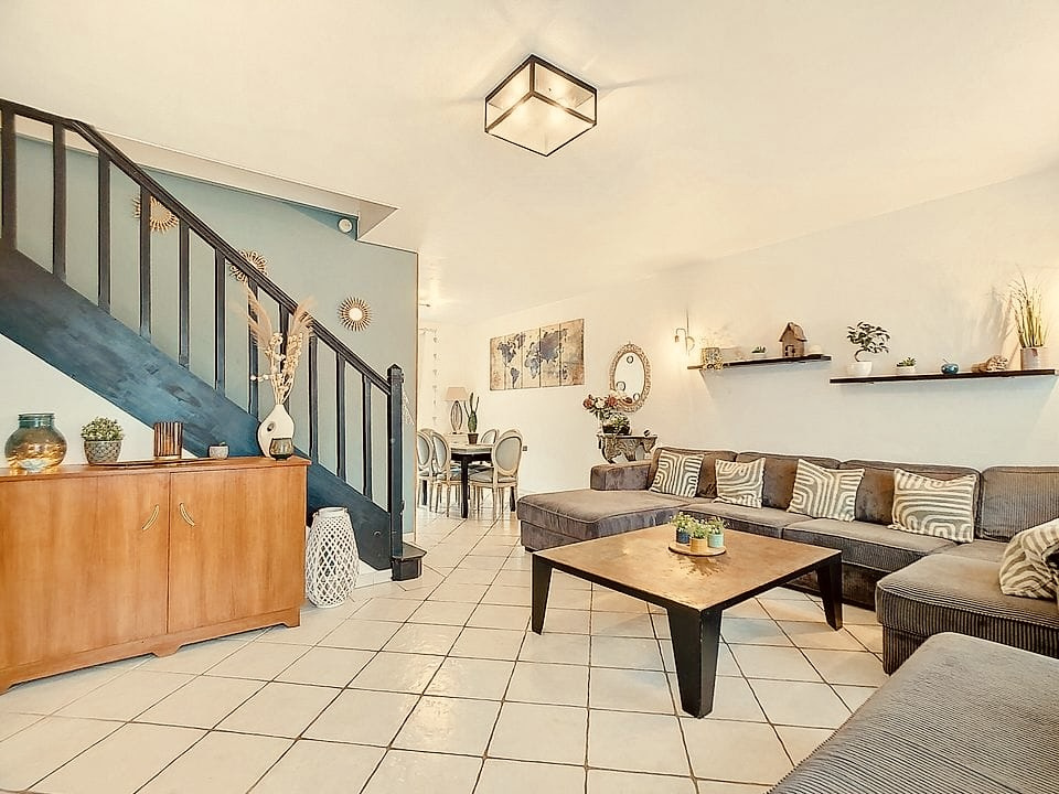 La maison offre une vie de plain-pied et de beaux volumes.