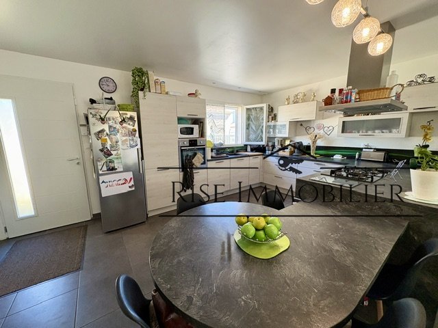 La maison s'ouvre sur un séjour lumineux, bénéficiant d'une belle exposition, avec une cusine équipée ouverte, créant un espace de vie convivial et agréable au quotidien.