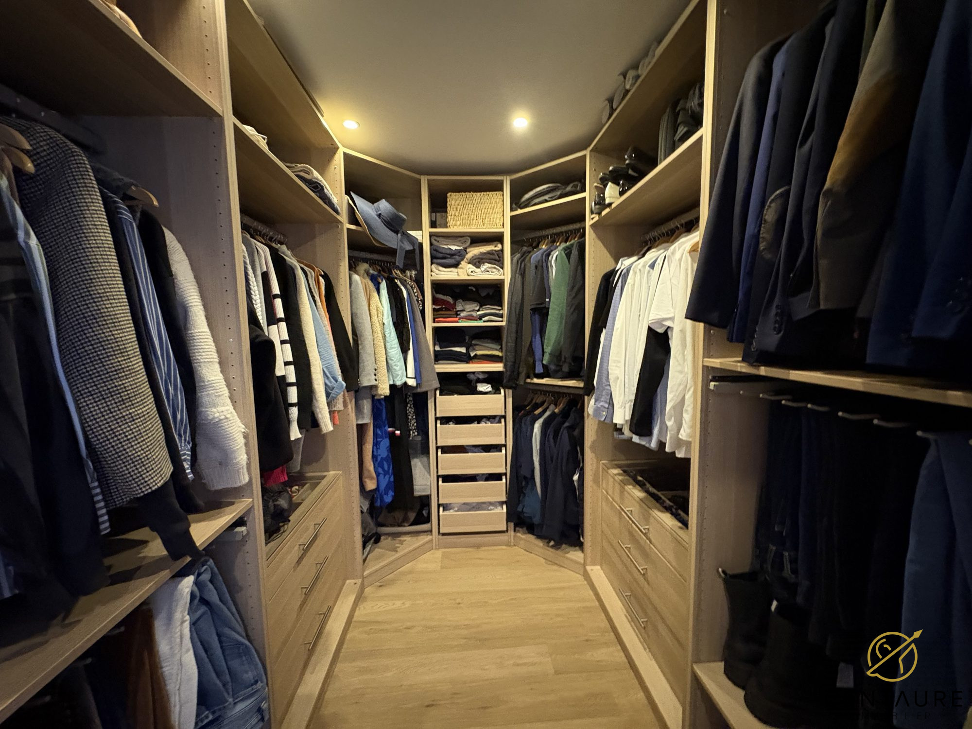 D'une surface habitable de 156m², cette maison en semi plain pied vous subjuguera dès l'entrée avec son élégant meuble sur mesure qui vous permettra de vous débarrasser de vos effets personnels. Vous serez alors immédiatement plongé dans un vaste séjour lumineux et entièrement parqueté. Tournée vers le jardin, et ceinturée de baies vitrées, cette pièce de vie chaleureuse bénéficie d'un Poêle à bois et de la climatisation. L'ensemble du rez-de-chaussée est par ailleurs équipé d'un plancher chauffant libérant les murs et les espaces pour offrir un cadre de vie épuré et contemporain. La cuisine qui jouxte la salle à manger pourra à loisir être ouverte sur la pièce voisine ou isolée grâce à d'astucieuses portes coulissantes. Pour votre confort, une buanderie accueillera les machines servira de lieu de stockage pour ne pas encombrer les espaces de vie. A l'autre extrémité du rez-de-chaussée se trouvent deux chambres dont une suite parentale avec salle de bain et dressing, offrant la possibilité d'une vie complète de plain pied.