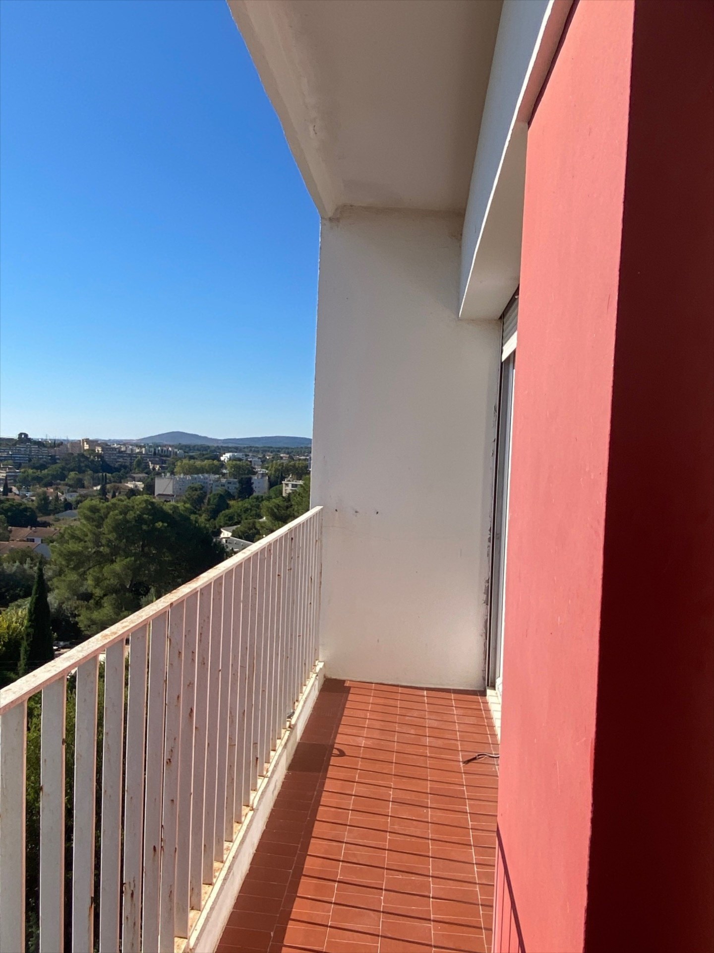 Séjour, cuisine, 3 chambres, 2 balcons avec vue sur Montpellier et la mer.