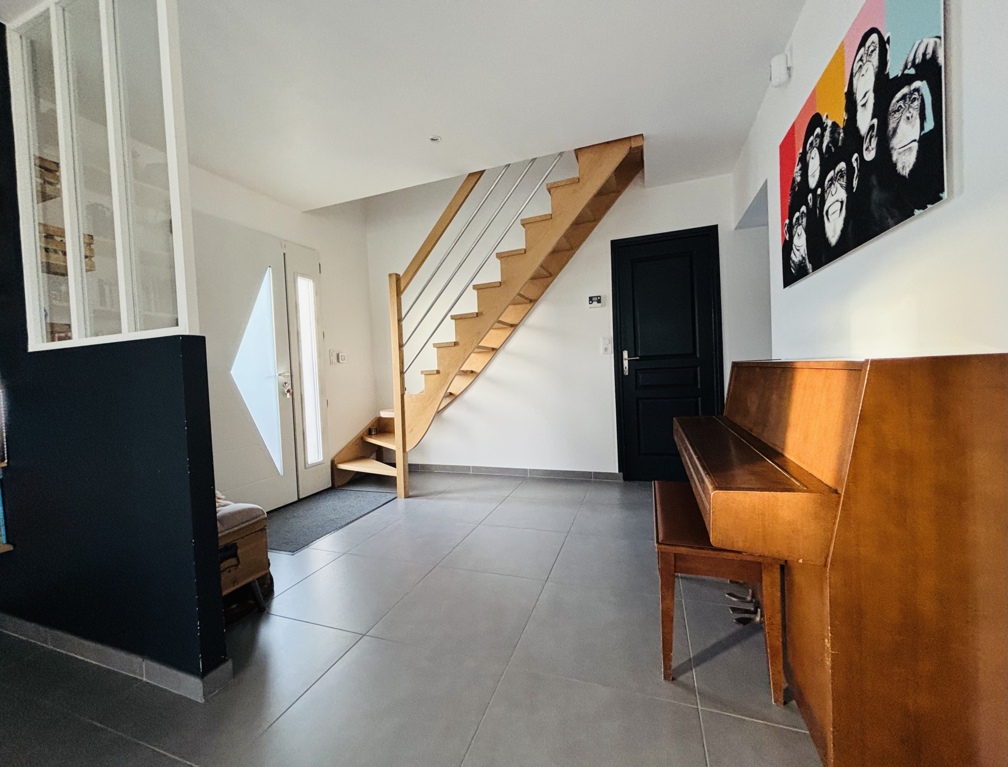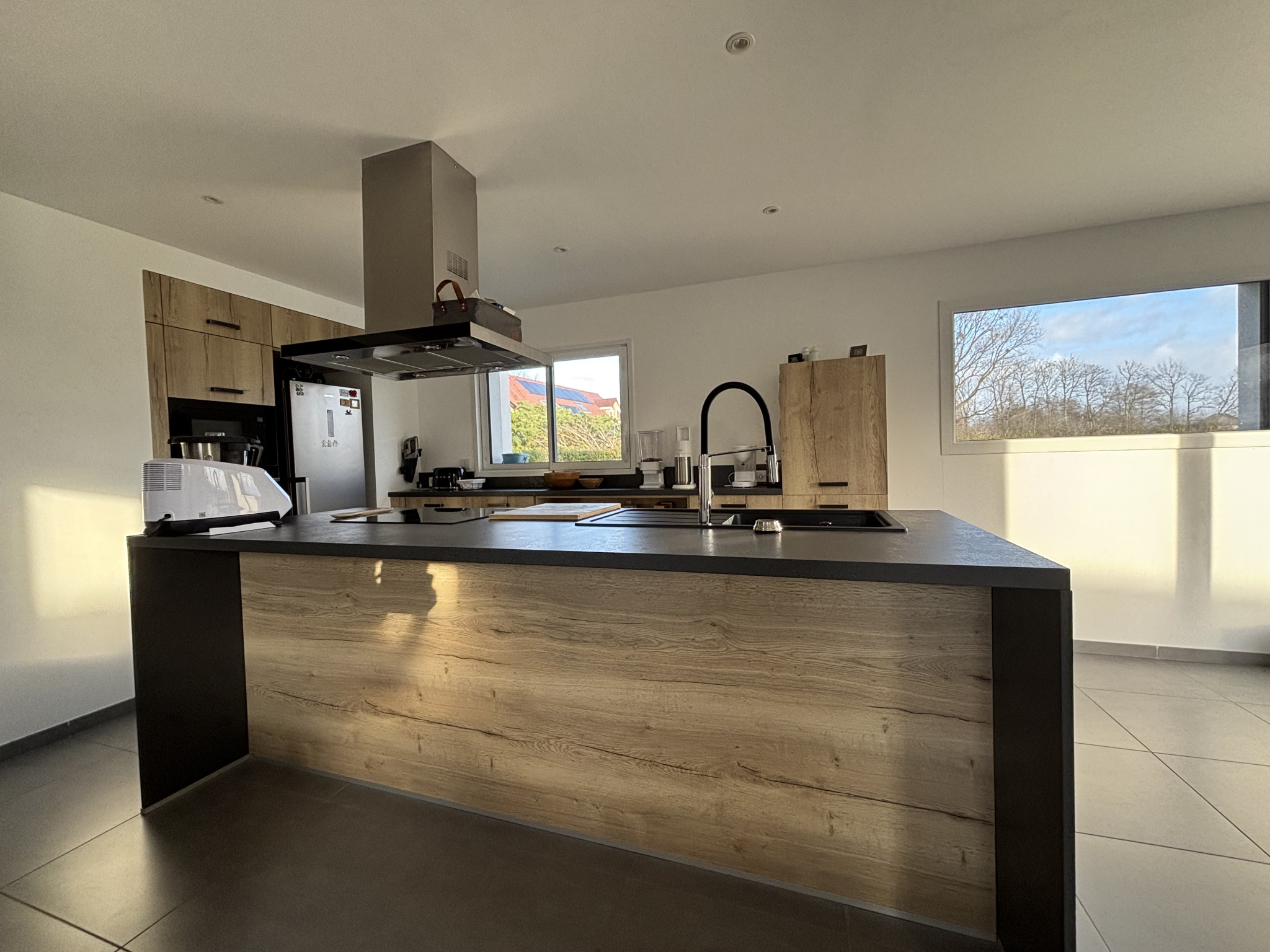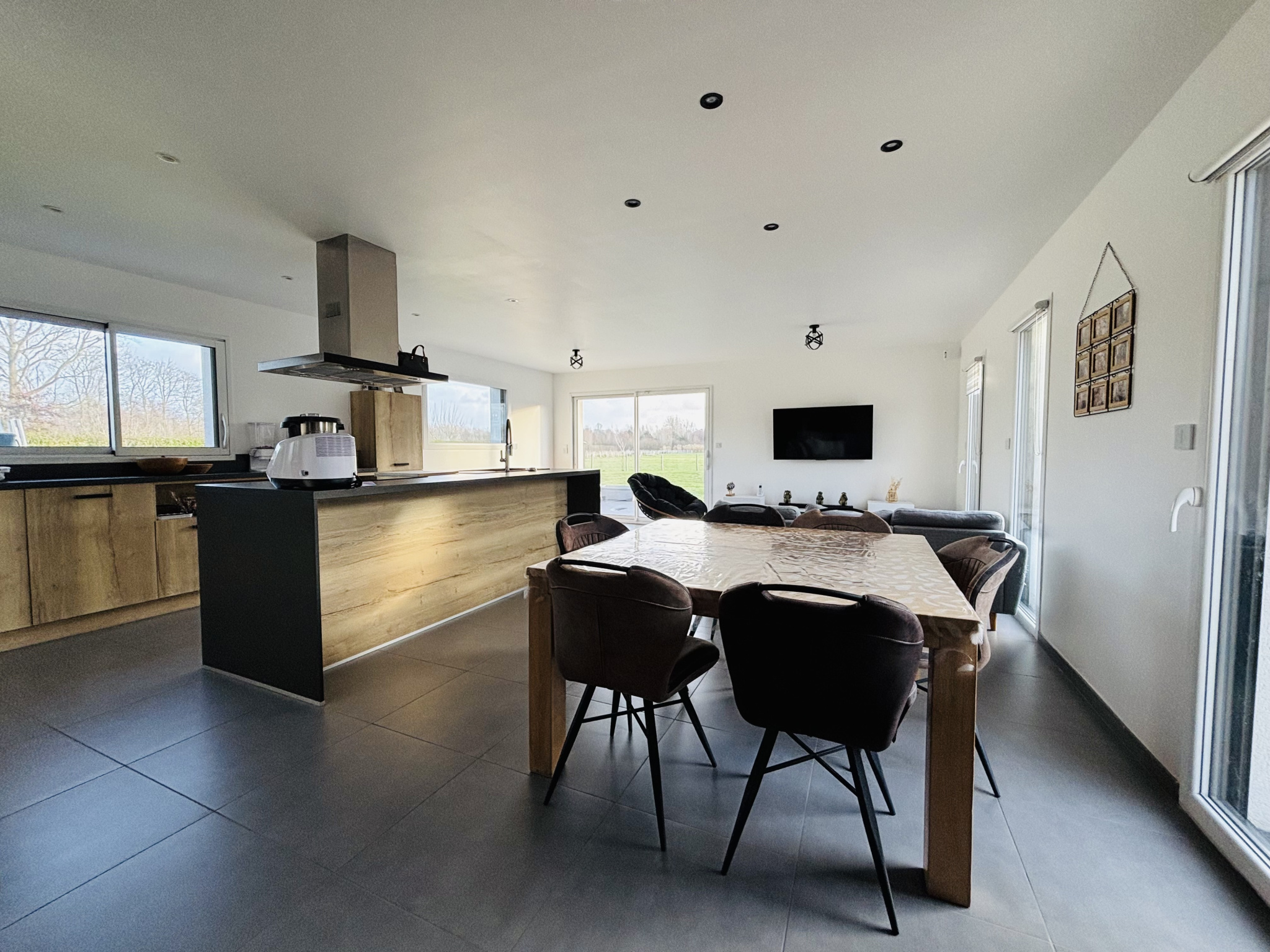 Nous avons le plaisir de vous présenter au sein de notre agence cette maison récente de 2020 aux lignes contemporaines, implantée sur une parcelle de 1169m2 aménagée et clôturée, offrant un environnement calme et dégagé sur des champs (non constructibles) et un cadre de vie agréable