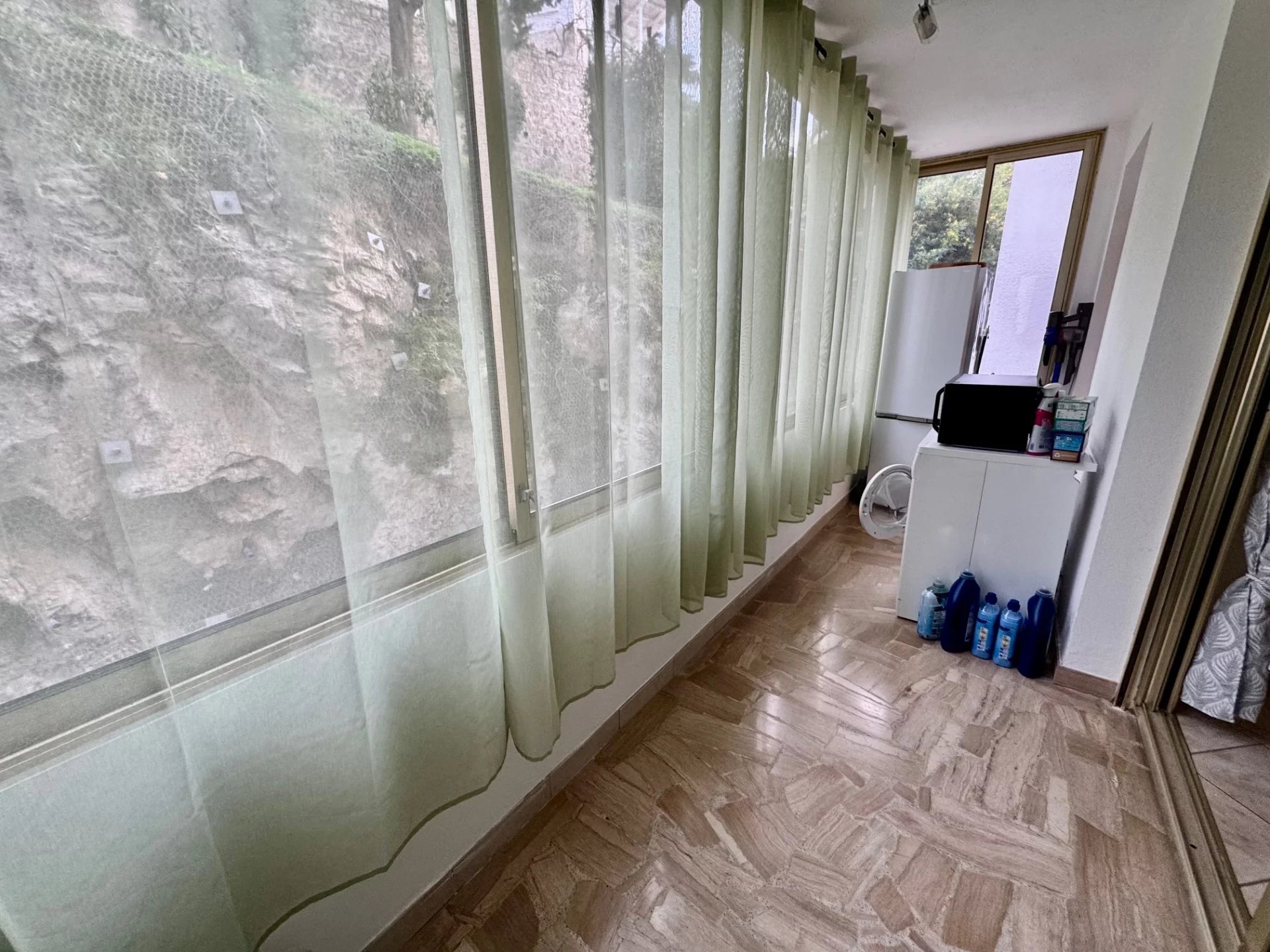 Cannes Basse Californie, au calme absolu sans vis à vis, dans petite copropriété de standing sécurisée, jolie vue dégagée et aperçu mer pour cet appartement 2 pièces traversant de 59m² hab., cuisine indépendante, séjour ouvrant sur terrasse Sud-Ouest, chambre, 2 salles de douche avec wc, loggia, cave et garage.