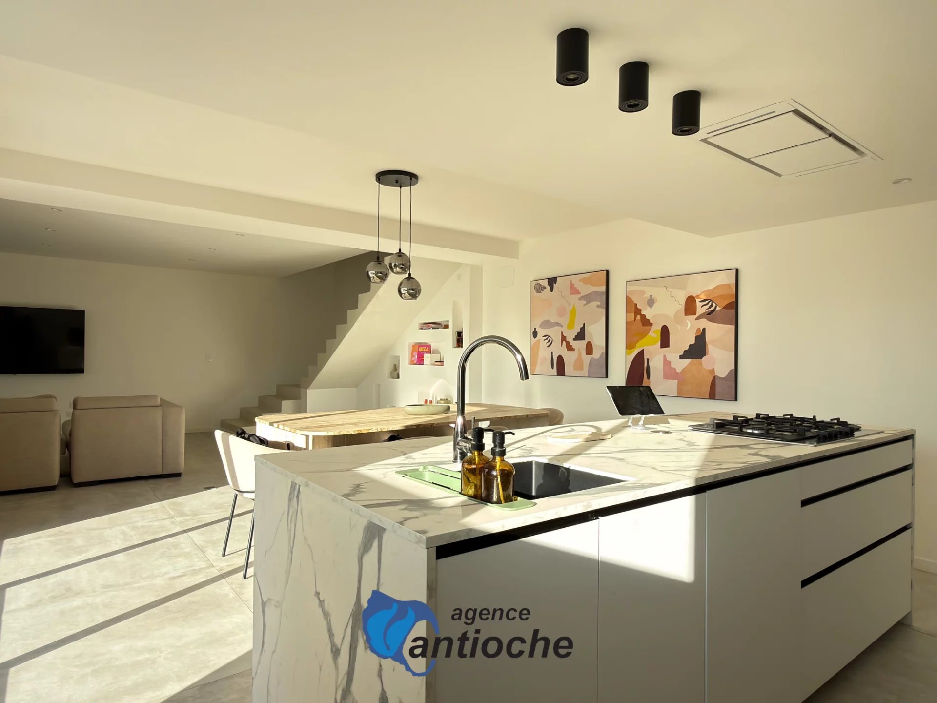 Cette maison a été construite avec des matériaux de qualité, sélectionnés avec soin : carrelage italien Richetti au sol, chauffage au sol au rez-de-chaussée et à l’étage, alimenté par une pompe à chaleur, avec double zone pour un confort optimal.