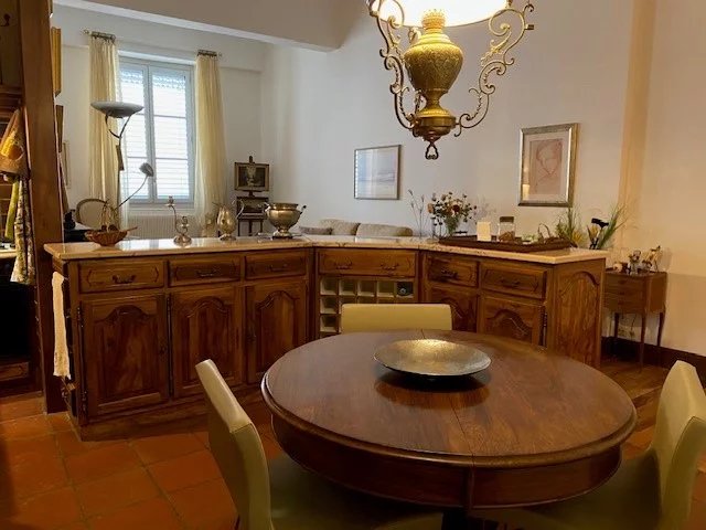 L'appartement est composé d'une entrée (portes avec vitraux),d' un grand et beau salon avec cuisine US équipée, cheminée en marbre, magnifiques parquets (plusieurs essences), d' une chambre communiquant avec la salle de bain , toilettes avec coin buanderie, cellier et galetas.