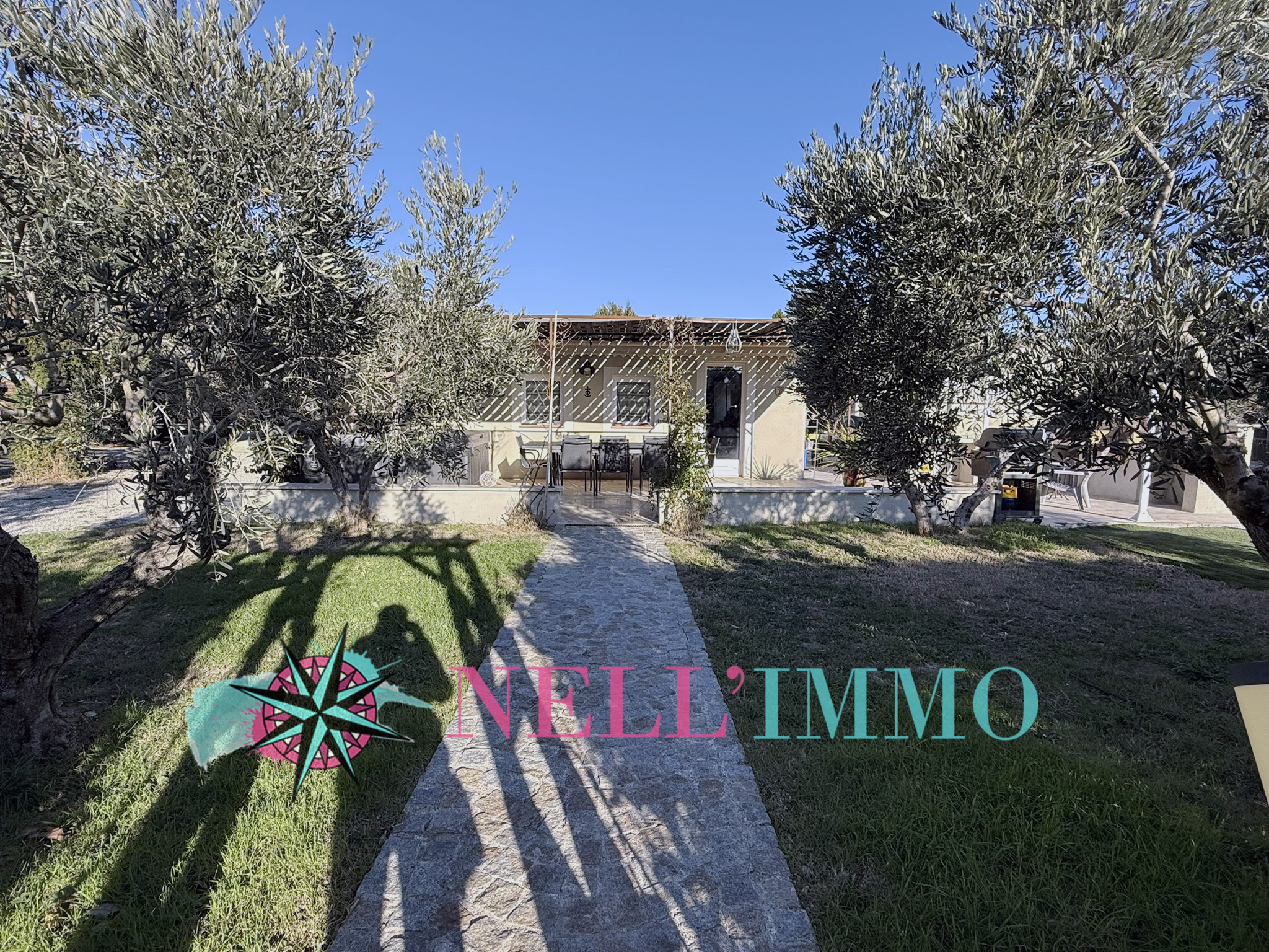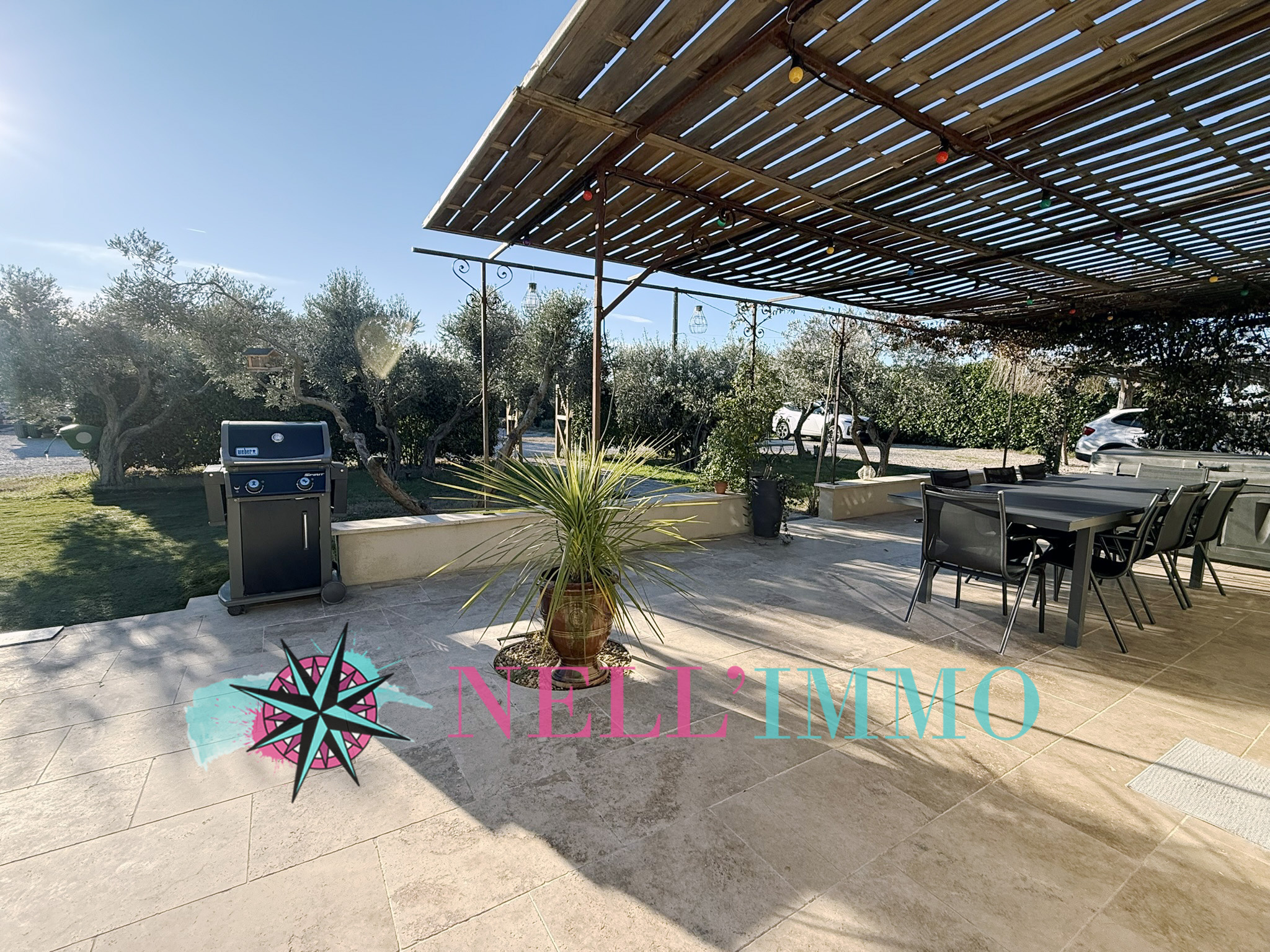 Le terrain dispose d'une immense aire de stationnement, d'arrosage intégré en partie et de nombreux éclairages extérieurs très pratiques et mettant en valeur la propriété. Entièrement clôturé et disposant d'une belle entrée avec portail automatique et visiophone. Le terrain est agrémenté de nombreuses plantations comme notamment cognassier, grenadier, figuier, prunier, pêcher, abricotier, amandier, 3 vignes, et beaux lauriers roses. Une oliveraie de 25 pieds adultes, permettent une production personnelle d'huile d'olive.