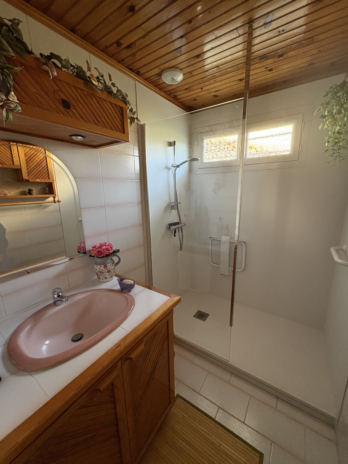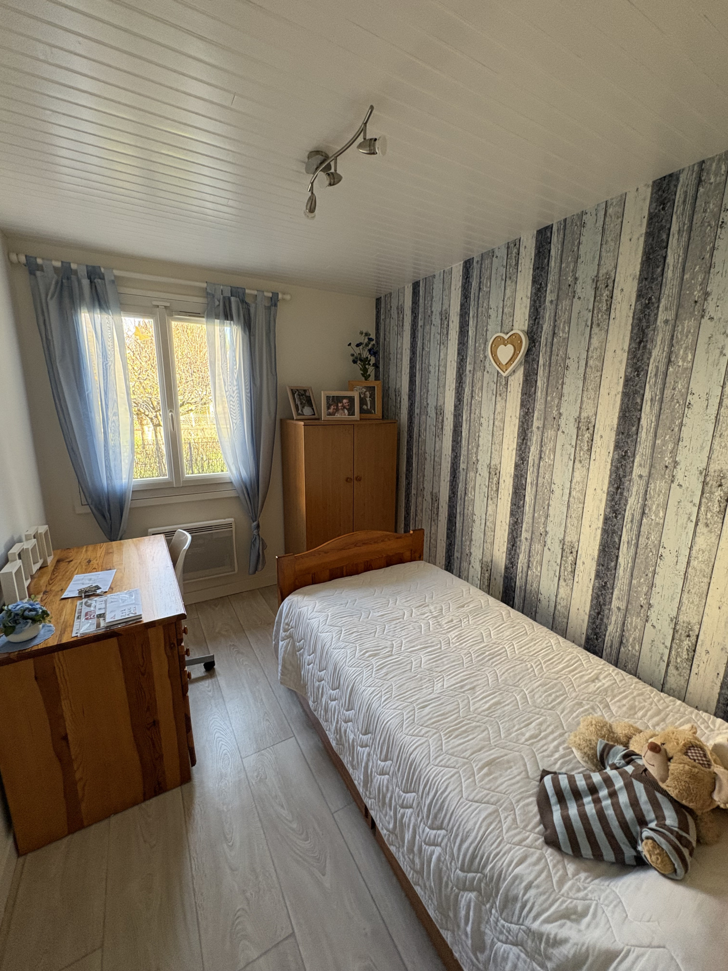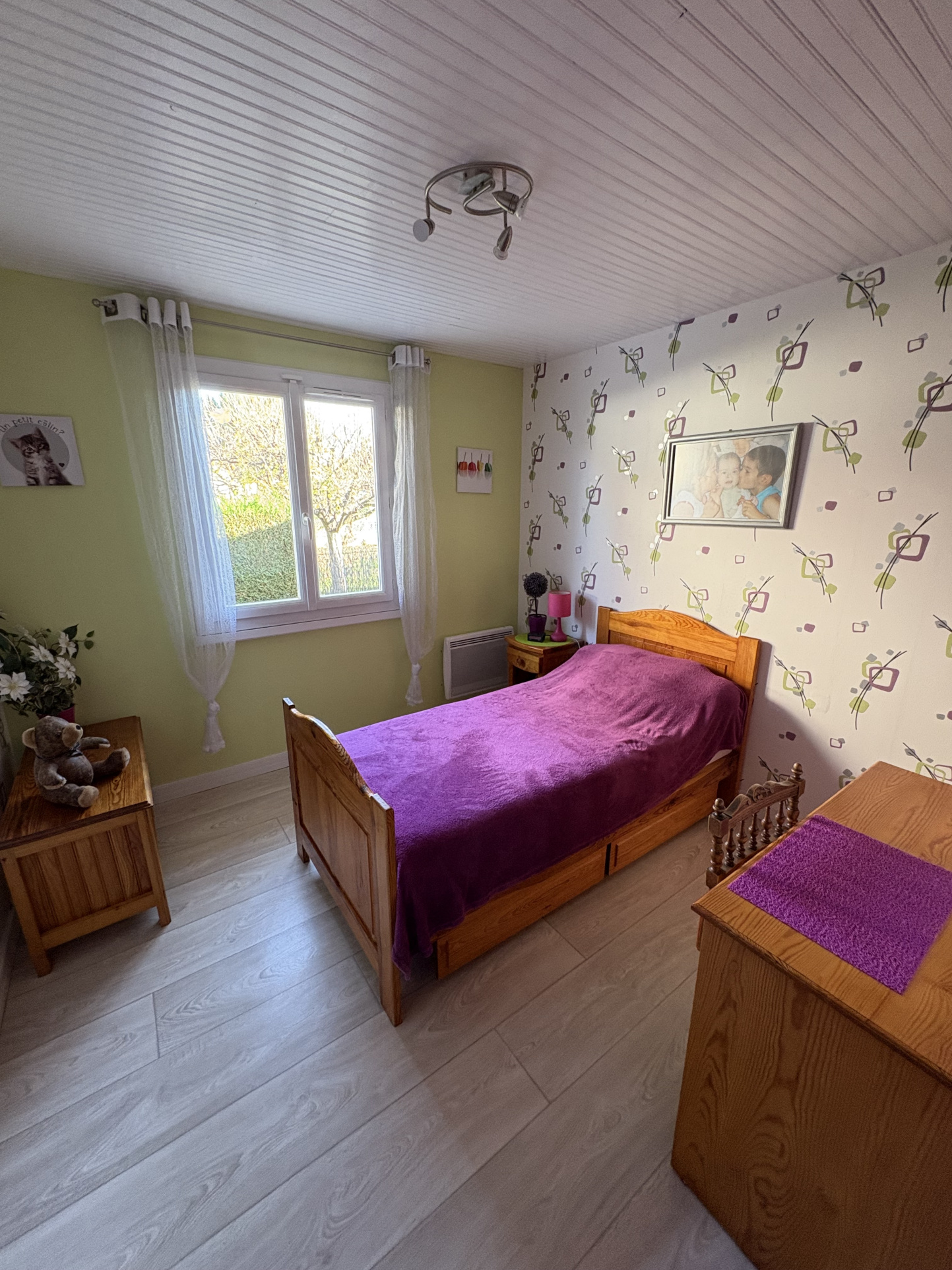 La maison, construite dans les années 70, propose un séjour lumineux de 28,5 m2, une cuisine séparée, trois chambres de 14 m2, 12,5 m2 et 9,4 m2 (dont deux avec placard), ainsi qu'un bureau, parfait pour le télétravail. Une salle d'eau, un WC indépendant, une buanderie, une entrée et un couloir central avec rangements.